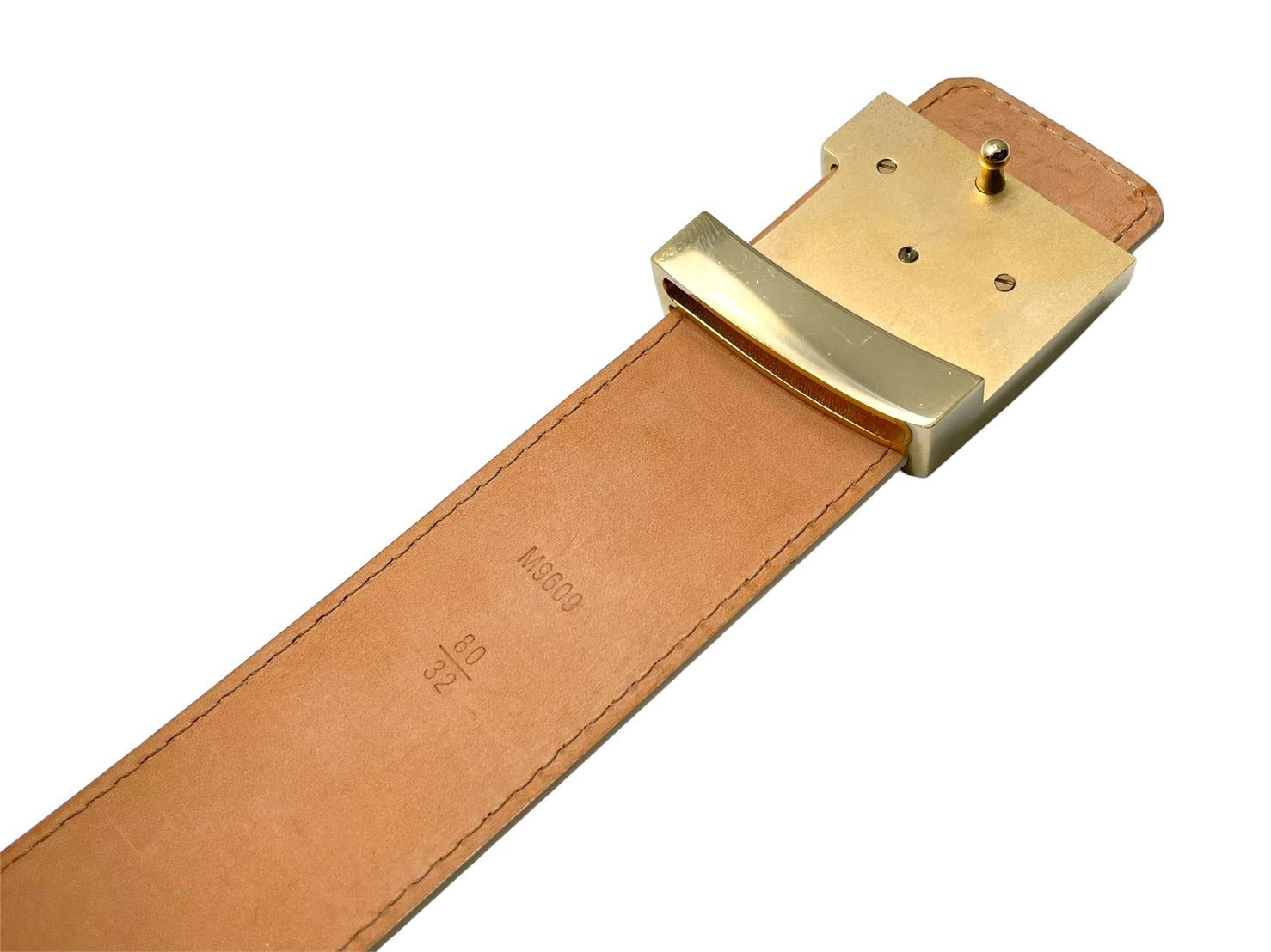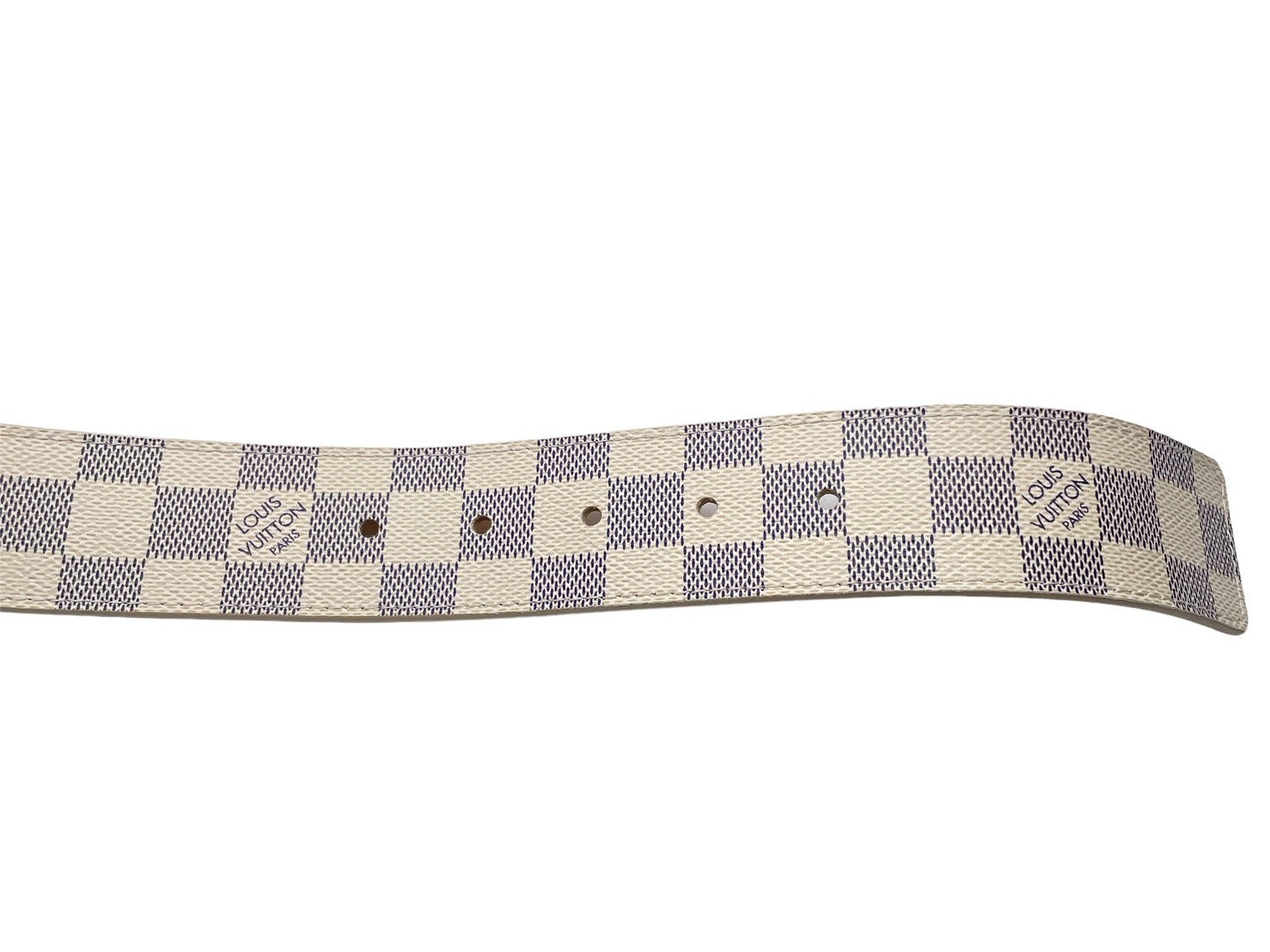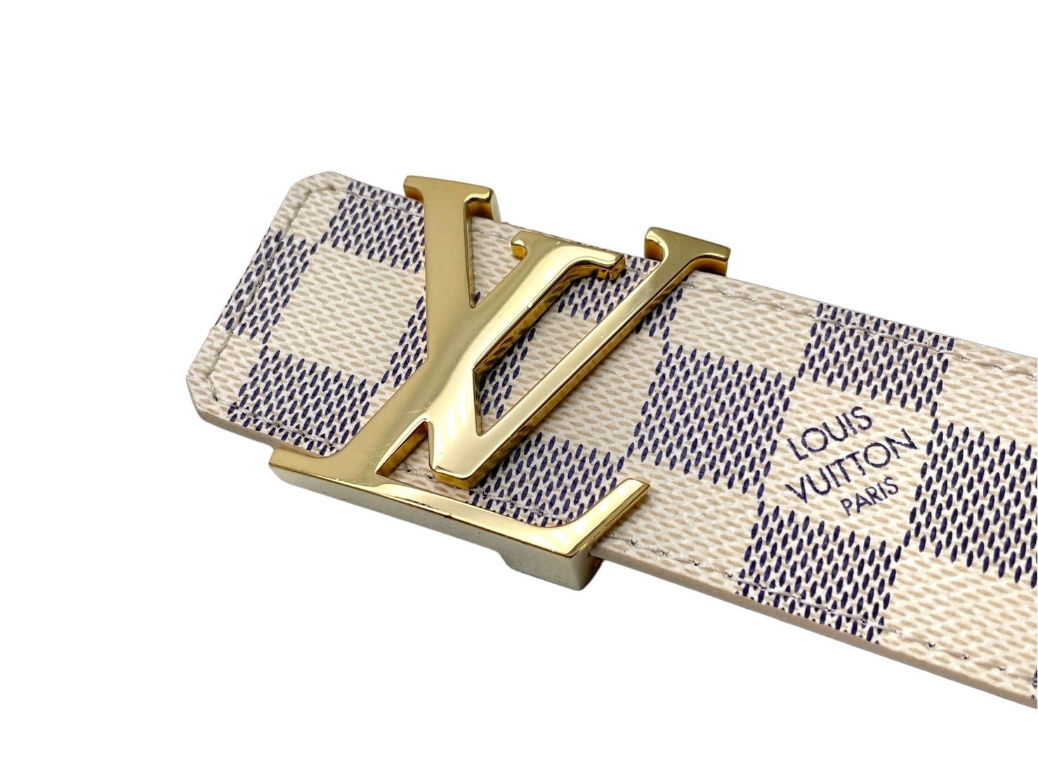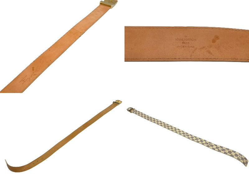 極美品 LOUIS VUITTON ルイ ヴィトン サンチュール イニシャル レザーベルト M9609 ダミエアズール サイズ80/32 ゴールド金具 中古 64425