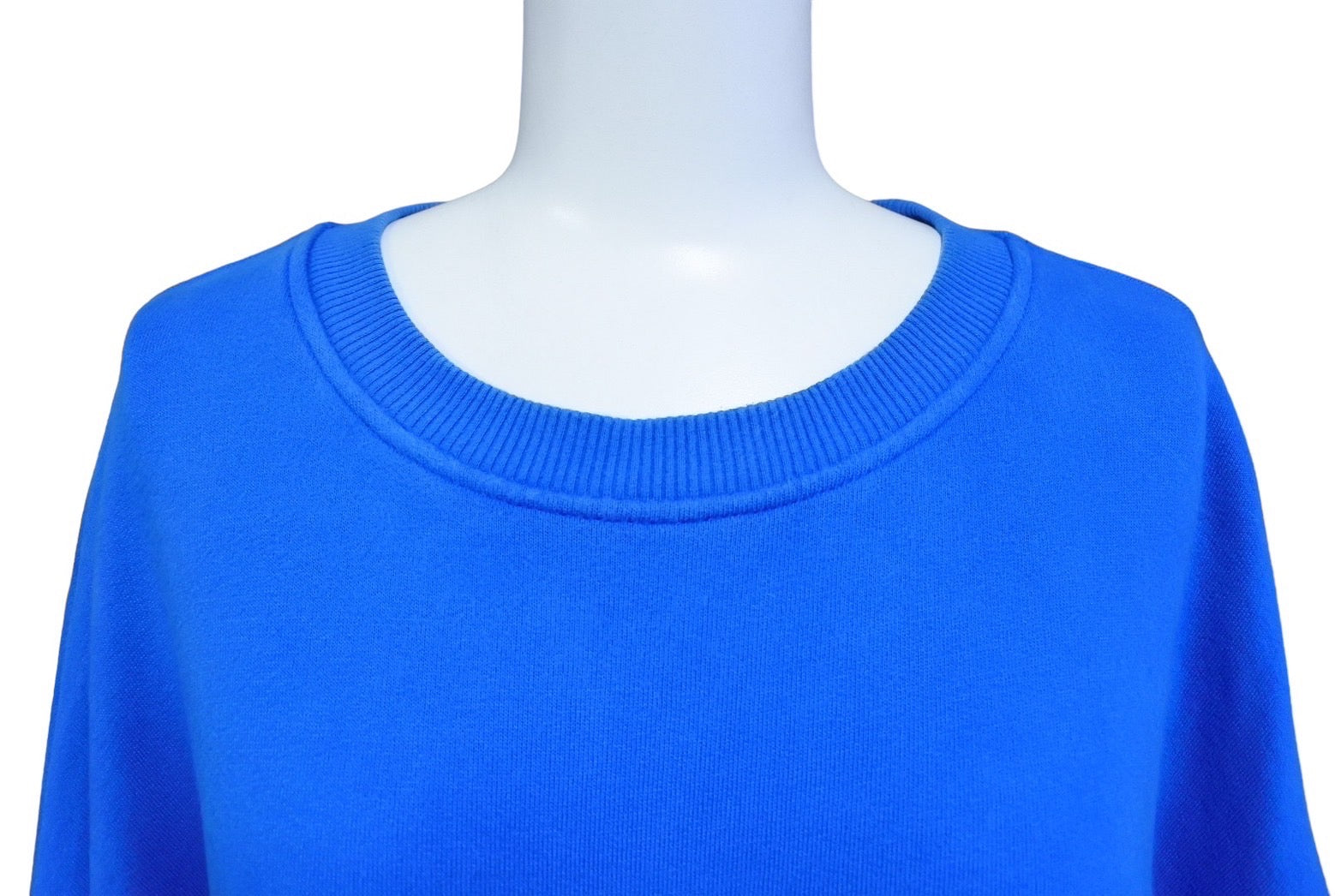 首元色落ち、薄汚れあり。袖先黄ばみ、傷あり。背面パッチ部分に毛玉あり。中古品としてご使用いただける状態です。