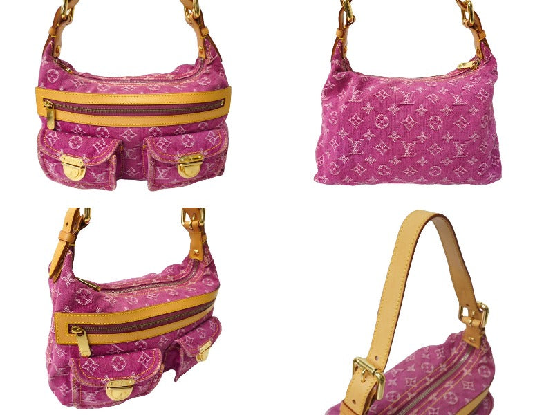 極美品 LOUIS VUITTON ルイヴィトン バギーPM モノグラムデニム ショルダーバッグ M95212 デニム レザー ピンク 中古 64896