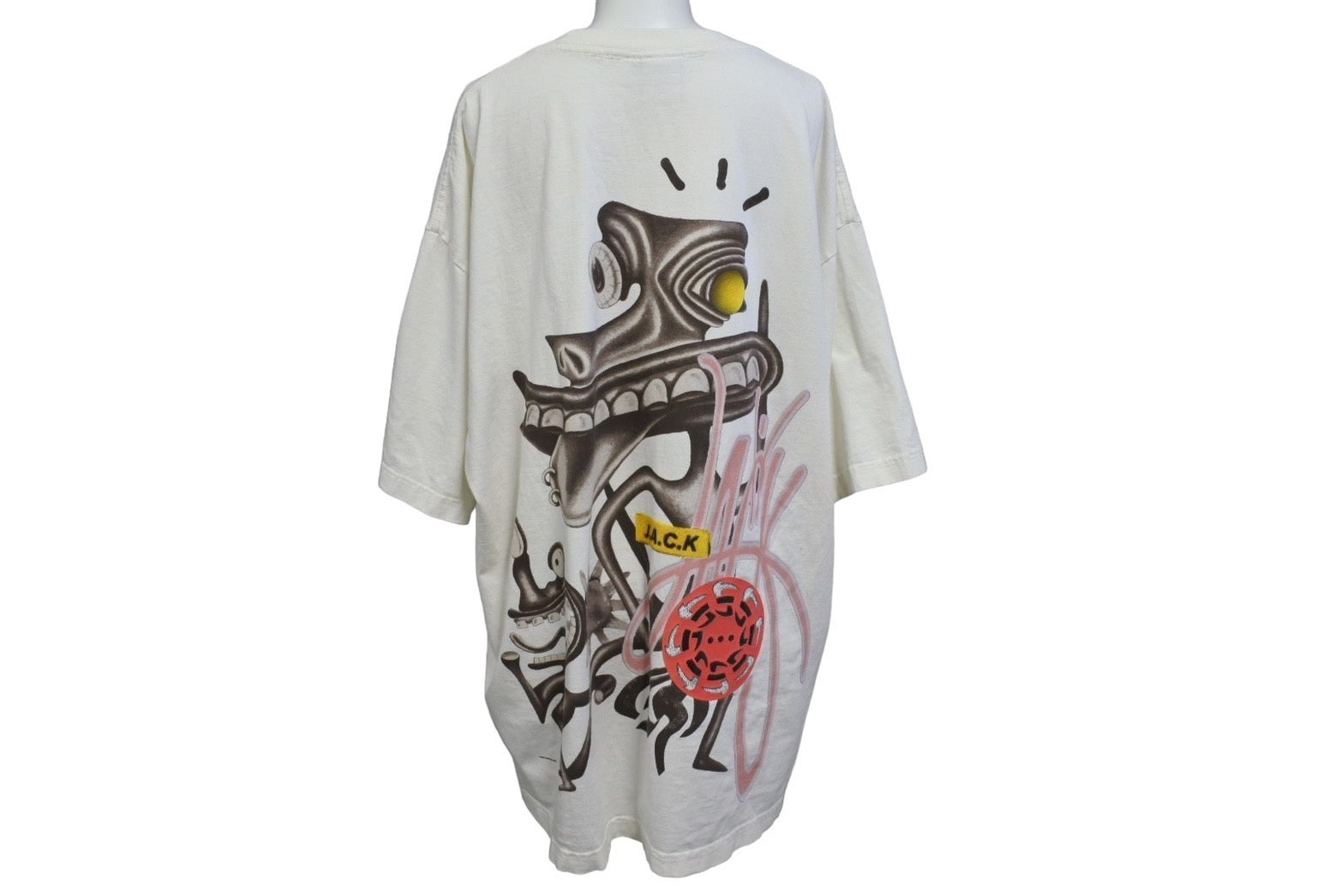 首回りよれあり。プリント少々色褪せあり。その他目立った傷や汚れの少ないアイテムです。