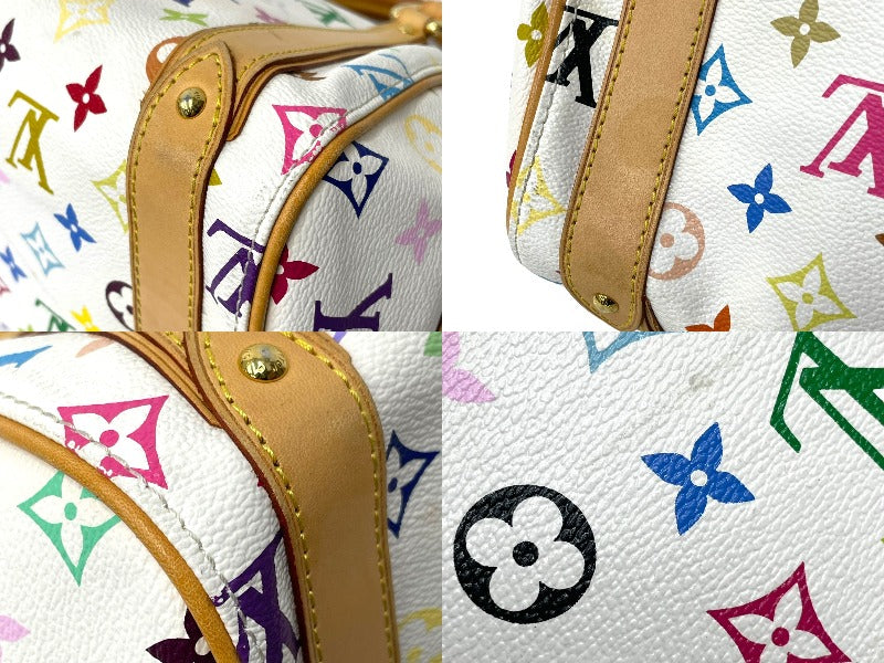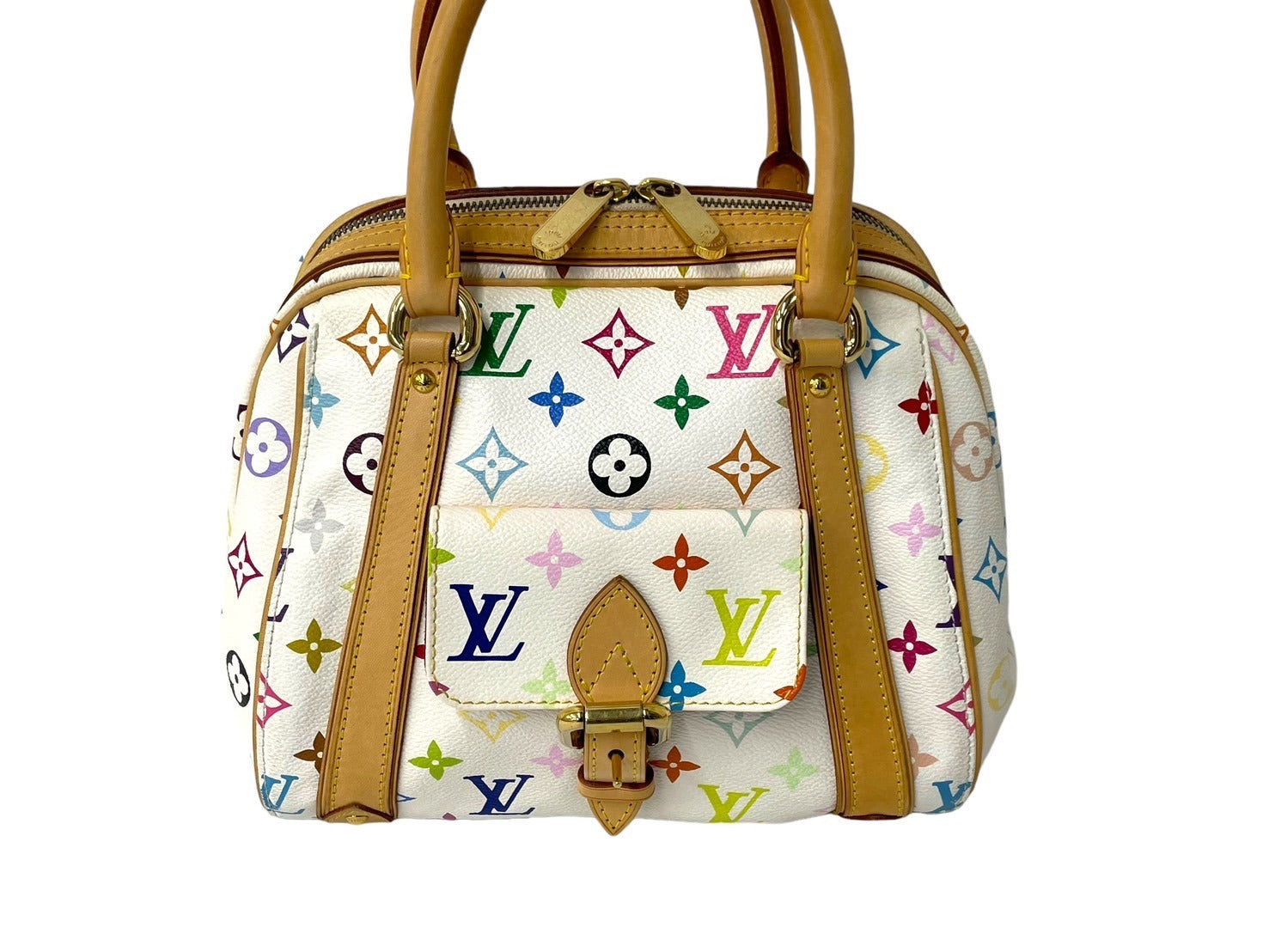 カラフルなロゴが全面に散りばめられた、ポップで可愛らしいデザインのハンドバッグです。
