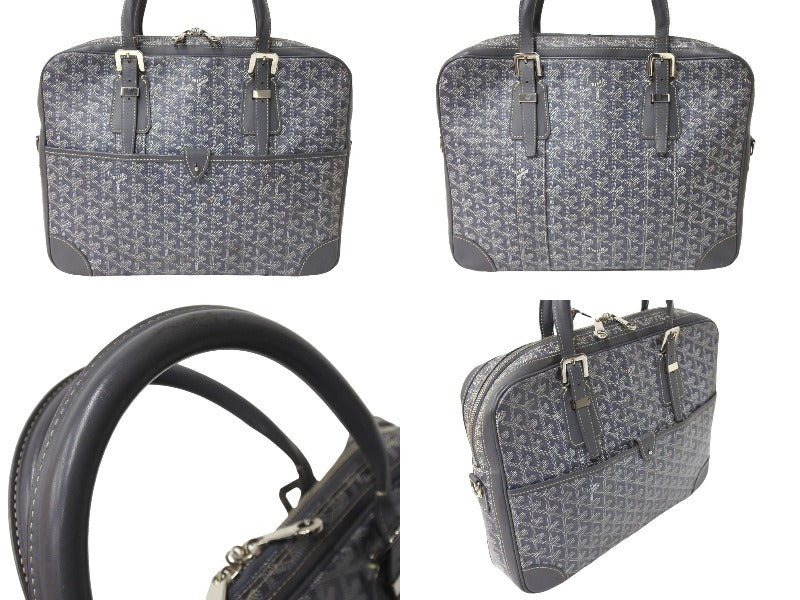 Goyard ゴヤール アンバサードPM ブリーフケース ビジネスバッグ ヘリンボーン グレー シルバー金具 良品 中古 65051