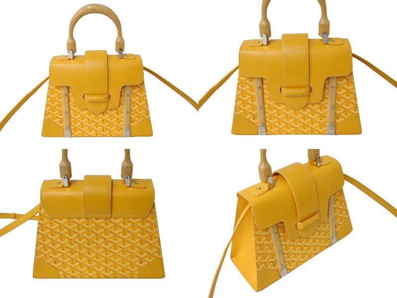 Goyard ゴヤール サイゴンPM 2WAYショルダーバッグ ハンドバッグ ゴヤールディンキャンバス ウッド イエロー 美品 中古 65164