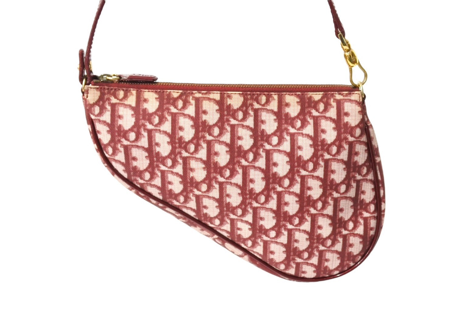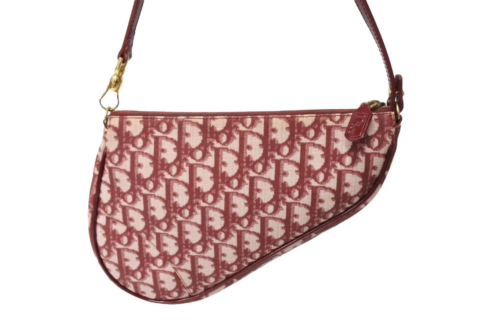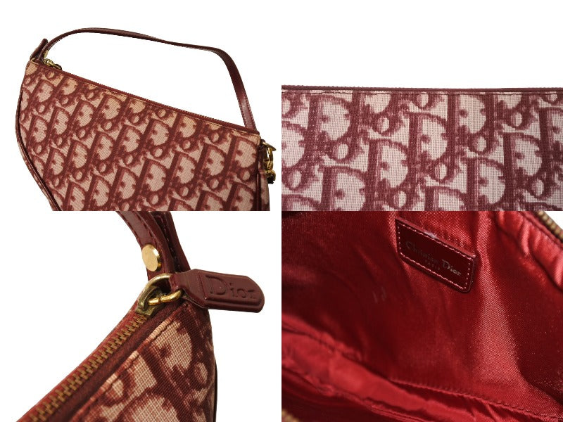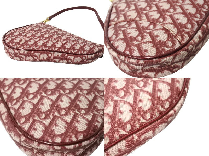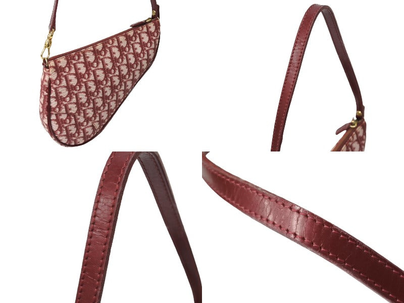 Christian DIor クリスチャンディオール トロッター柄 サドル ポーチ バーガンディー ワンショルダー BO A 0051 美品 中古 65167