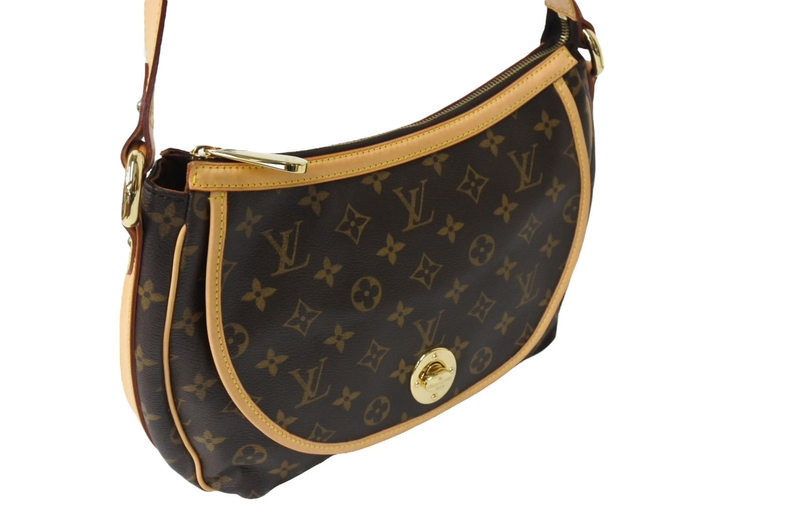 新品同様 LOUIS VUITTON ルイヴィトン トゥラムPM ショルダーバッグ M40076 PVCコーティングキャンバス ヌメ革 ブラウン 美品 65186