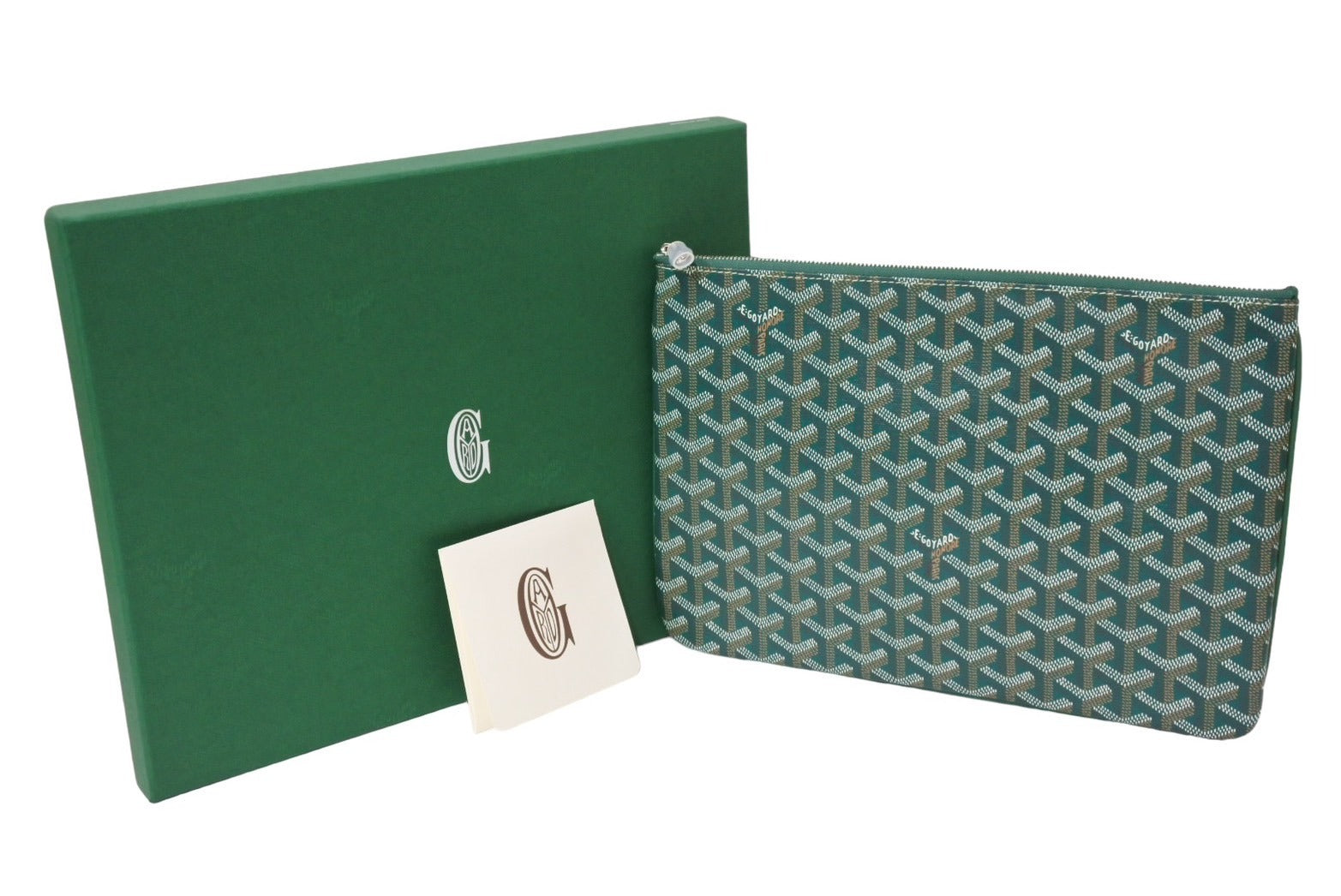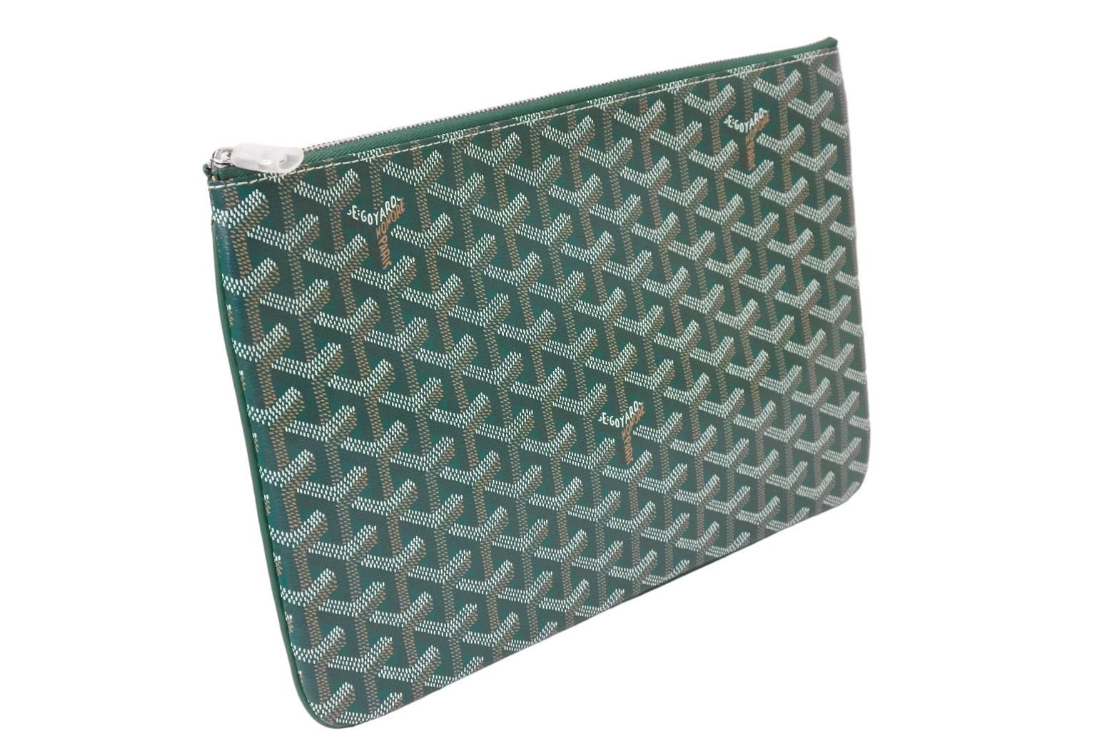 新品未使用 GOYARD ゴヤール セナ MM クラッチバッグ SENAT2MMLTY09CL09P レザー PVC グリーン シルバー金具 中古 65239