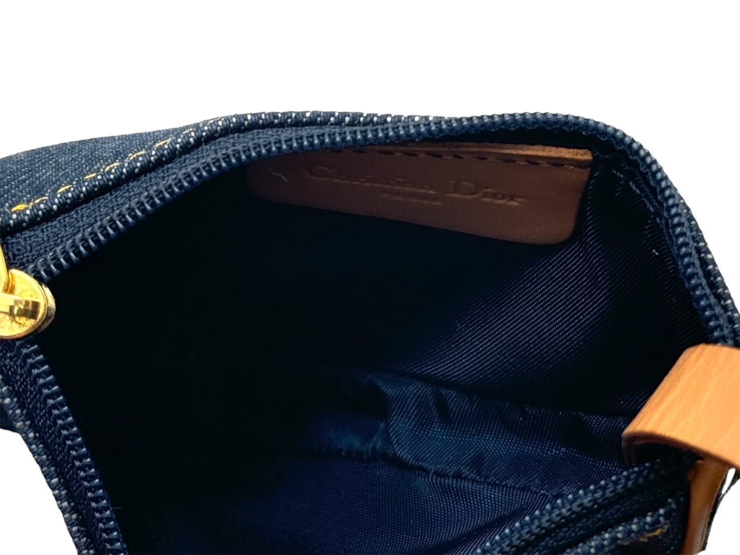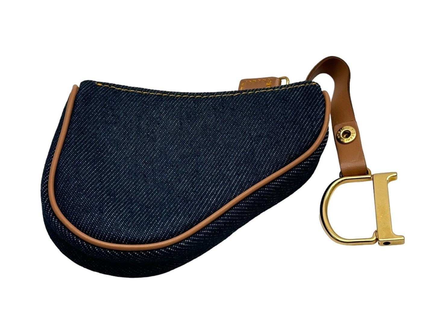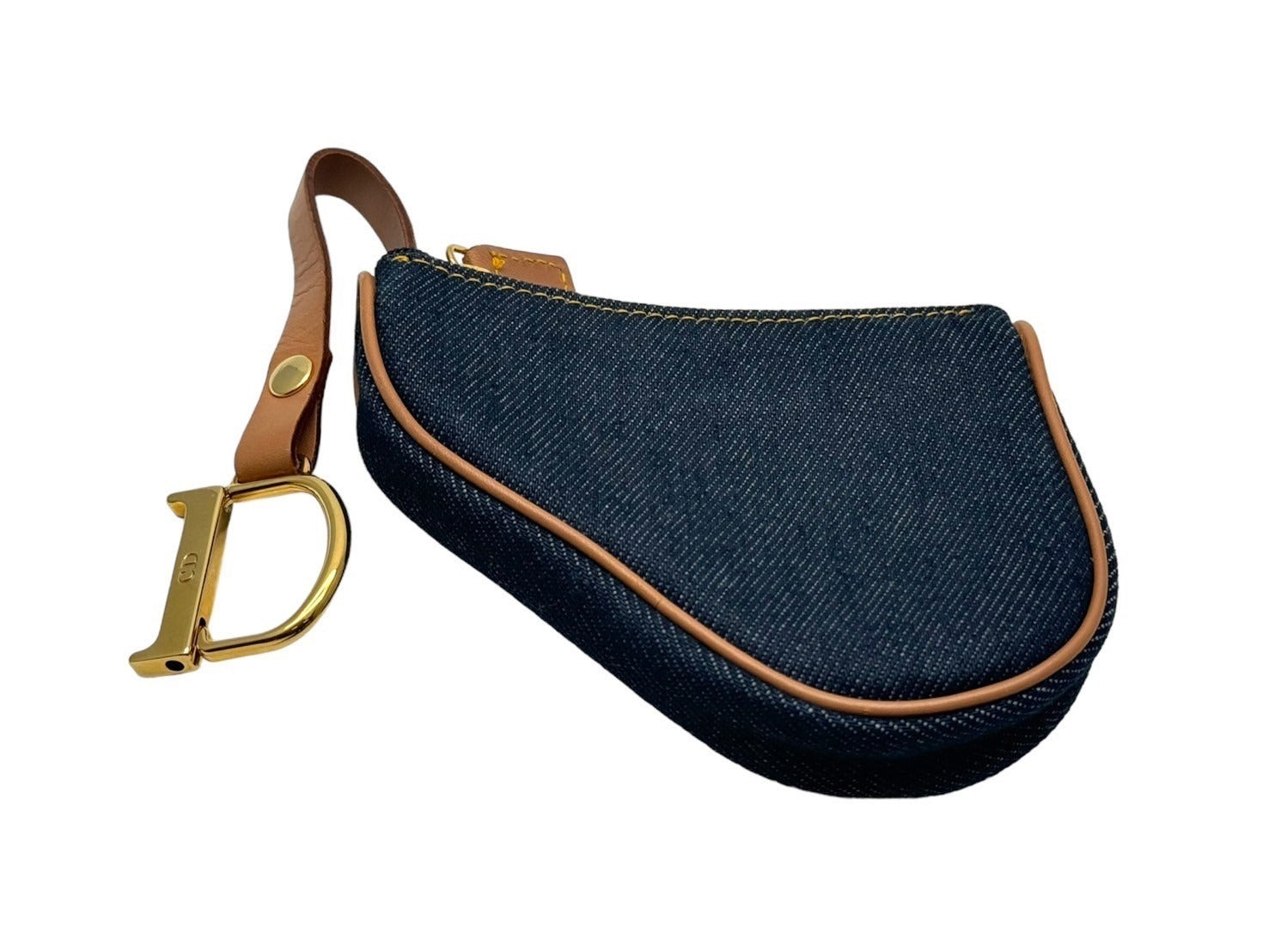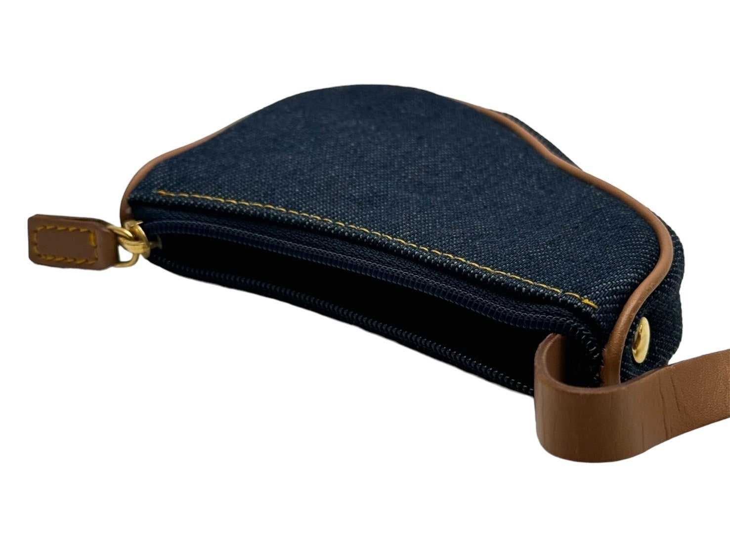 ChristianDior クリスチャンディオール コインケース サドルバッグ型 RU 0021 デニム レザー ネイビー ブラウン 美品 中古 65337