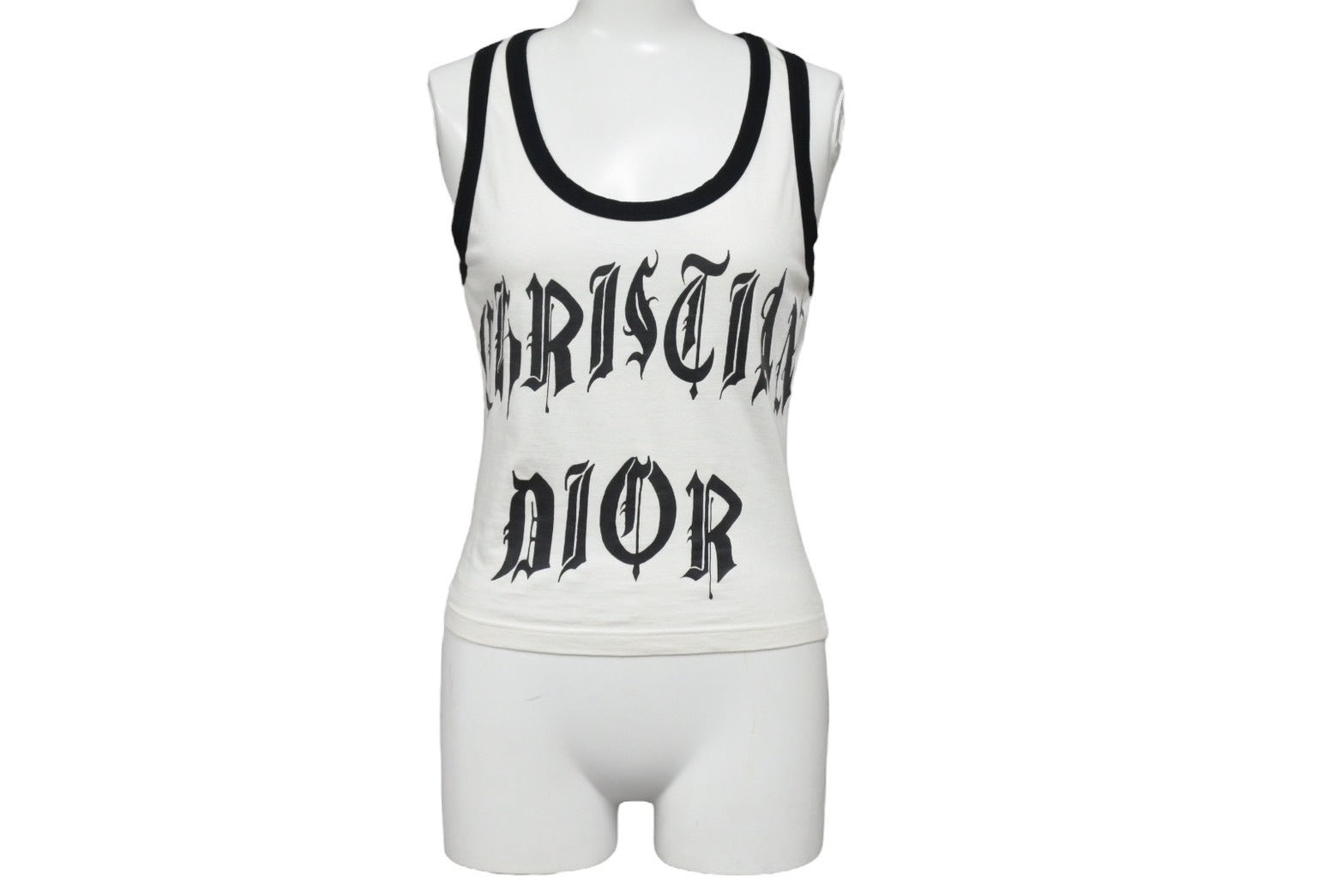 Christian Dior クリスチャンディオール タンクトップ 02SS サイズ36 2E12155800 プリント ホワイト ブラック 美品 中古 65441