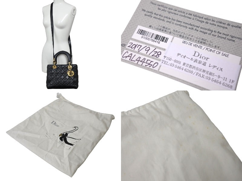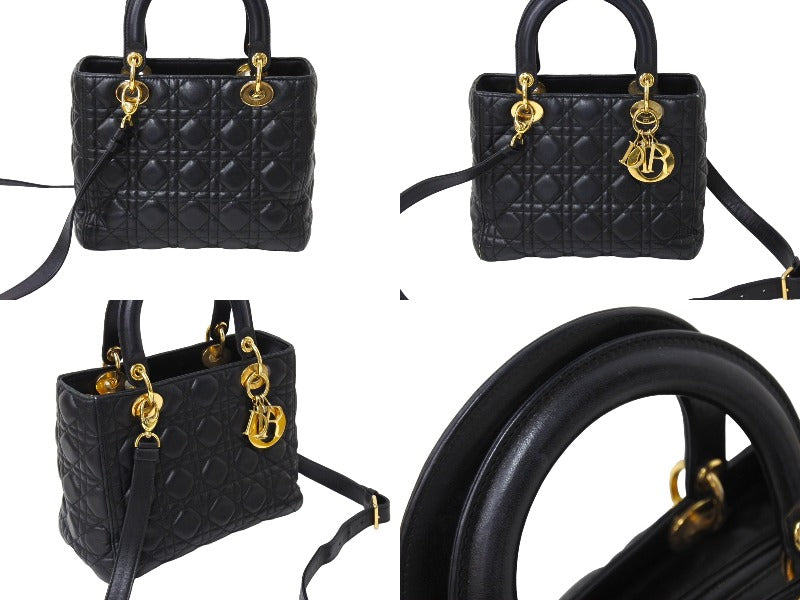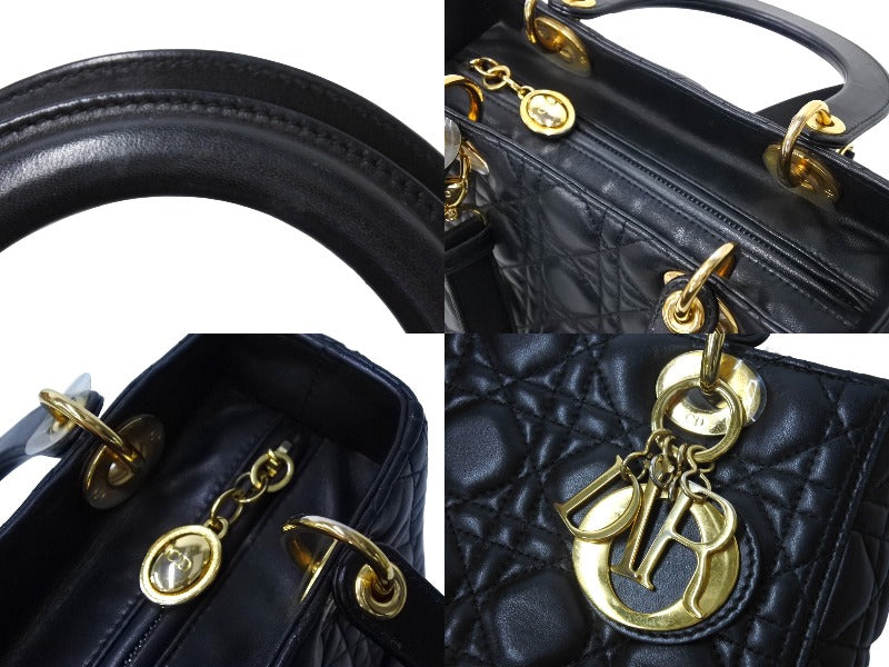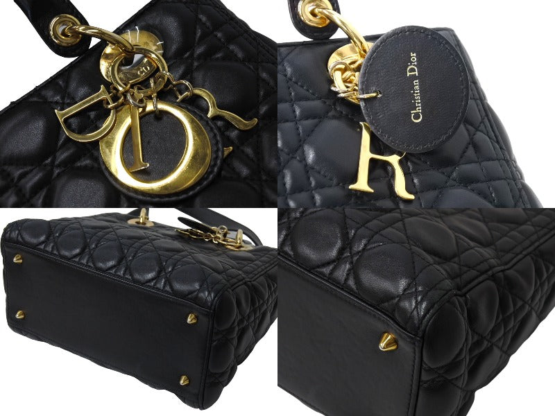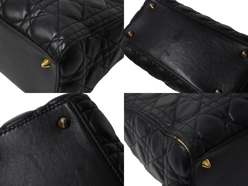 Christian Dior クリスチャンディオール レディディオール カナージュ ハンドバッグ CAL44550 ラムスキン ブラック 美品 中古 65631