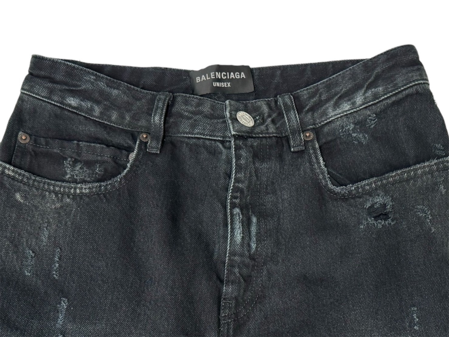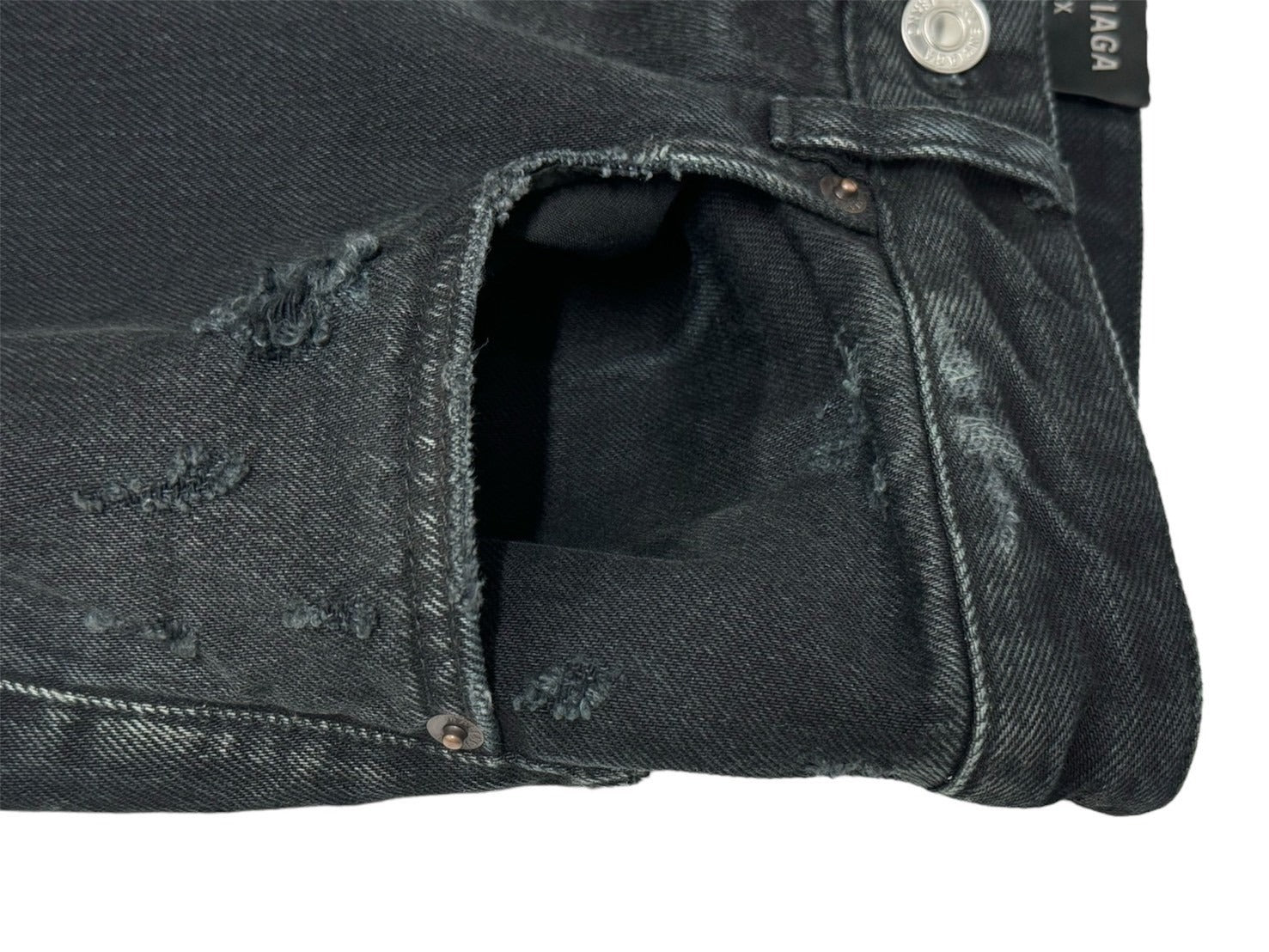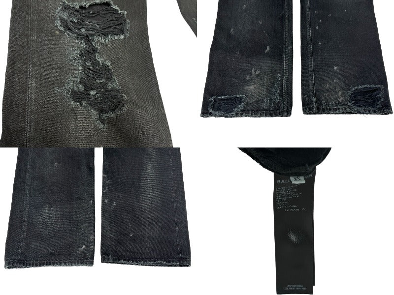 極美品 BALENCIAGA バレンシアガ デニムパンツ デストロイ加工 ダメージデザイン 23SS サイズXS ブラック 中古 65821