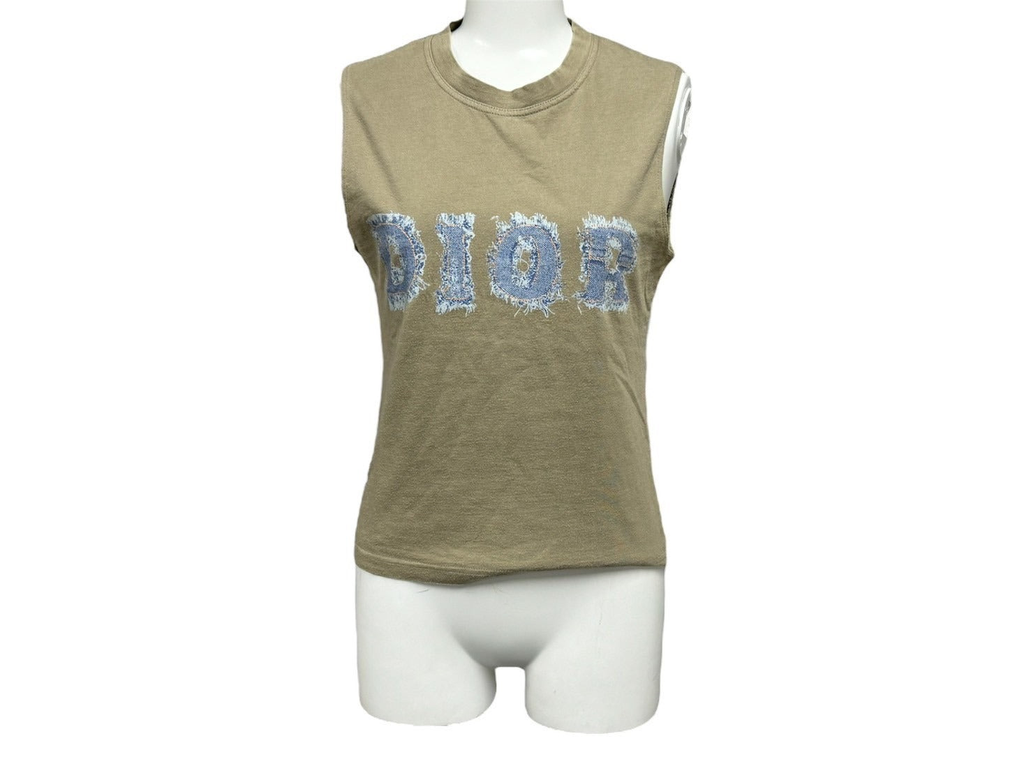 Christian Dior クリスチャンディオール タンクトップ 3P16155302 サイズ38 デニムロゴ プリント カーキ コットン 美品 中古 65902