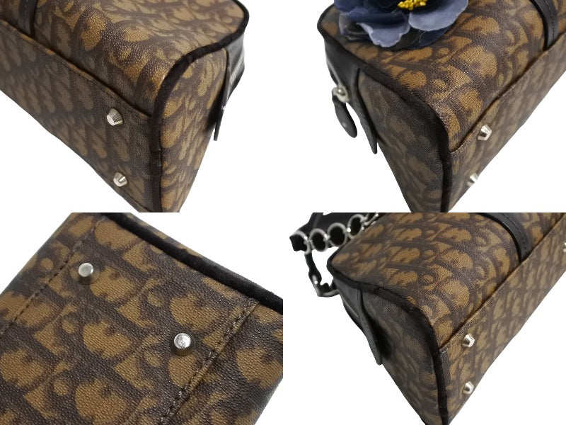 ChristianDior クリスチャンディオール ロマンティック トロッター ハンドバッグ PVC レザー ベロア ブラウン 美品 中古 66023