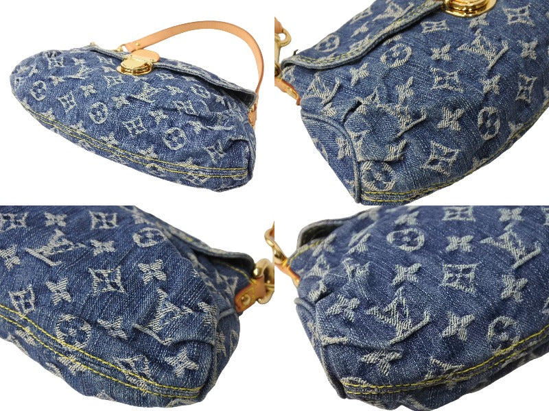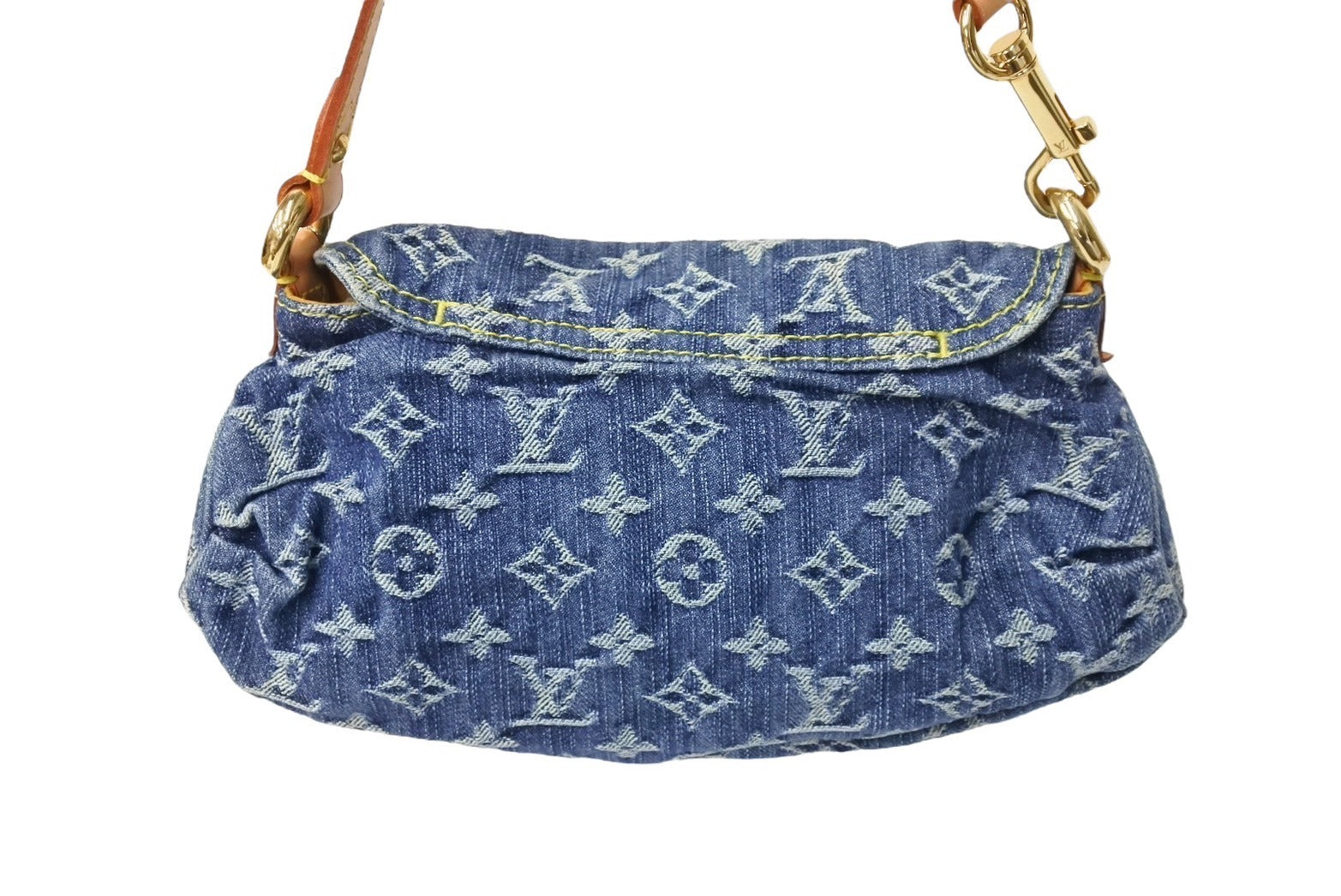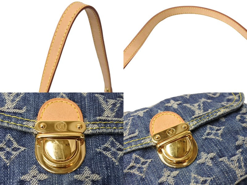 極美品 LOUIS VUITTON ルイヴィトン ミニプリーティ ハンドバッグ M95050 モノグラム デニム レザー ゴールド金具 中古 66097