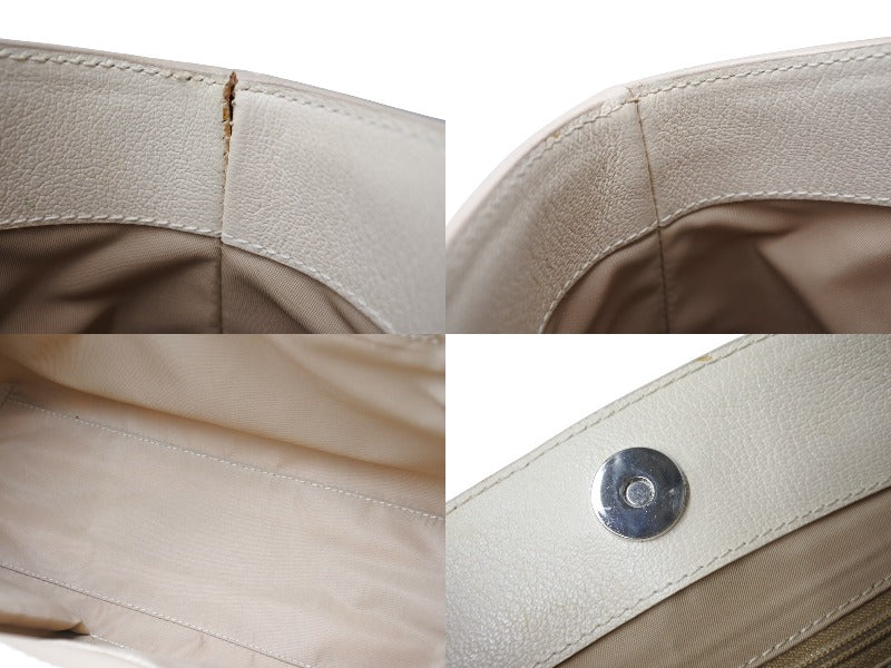 角部分わずかに薄汚れあり。ハンドル根元部分、コバ浮き、コバ割れあり。金具部分すれ、小傷あり。その他特に目立つ傷や汚れのない状態です。