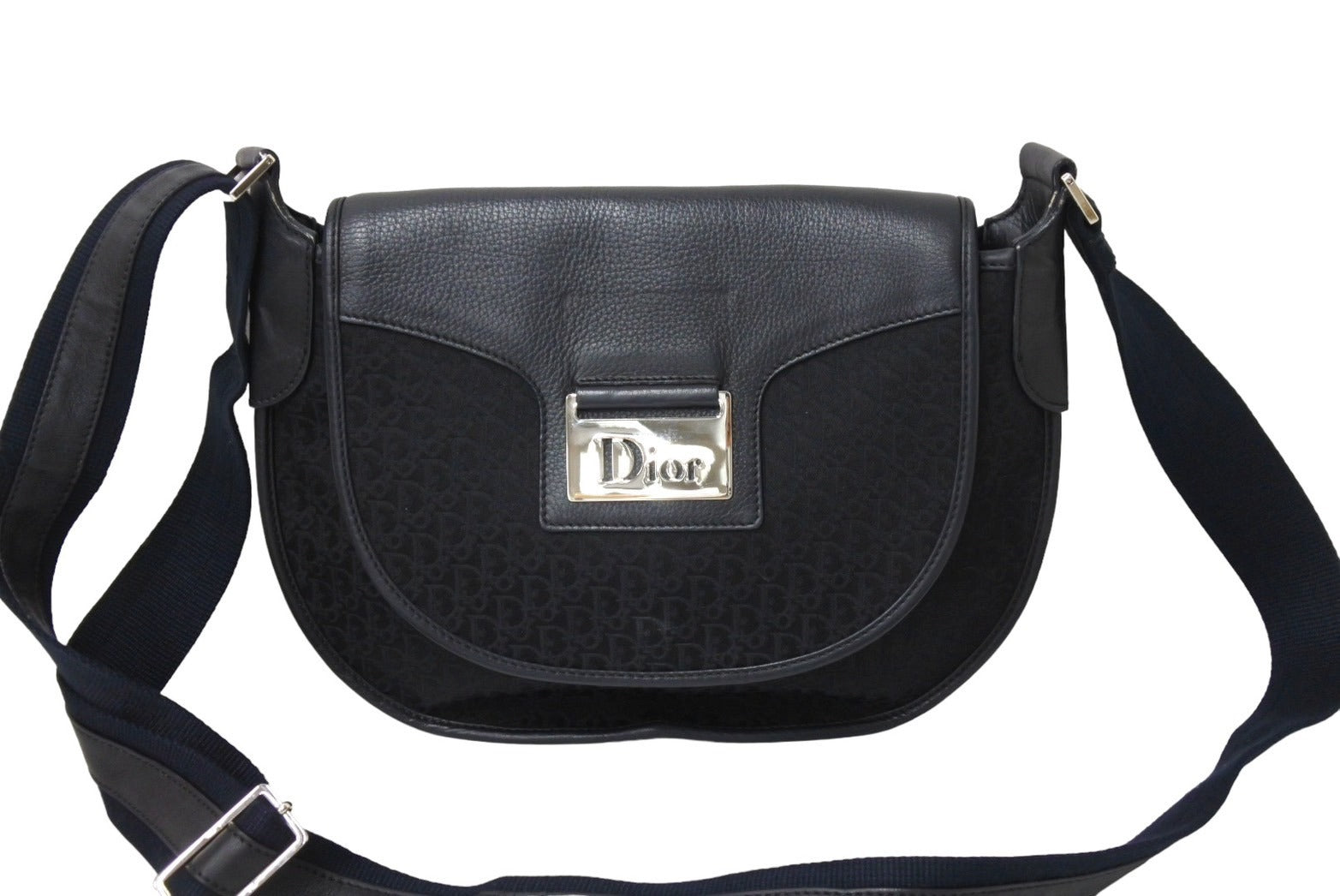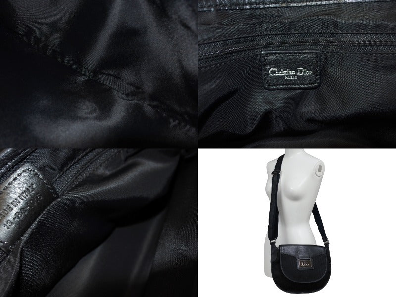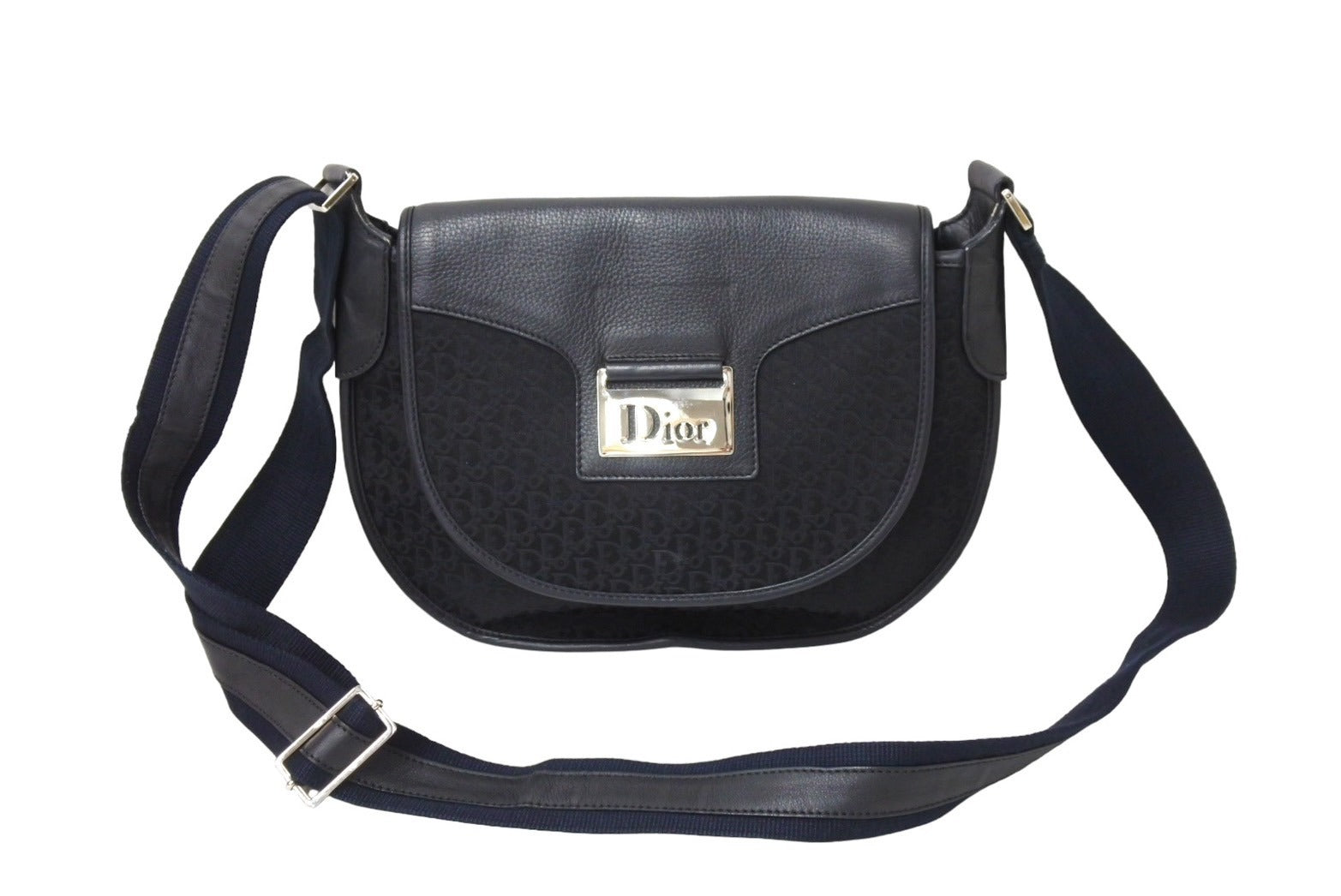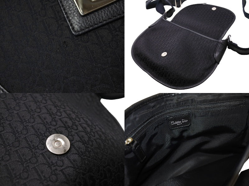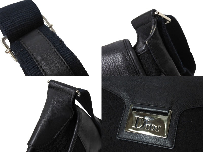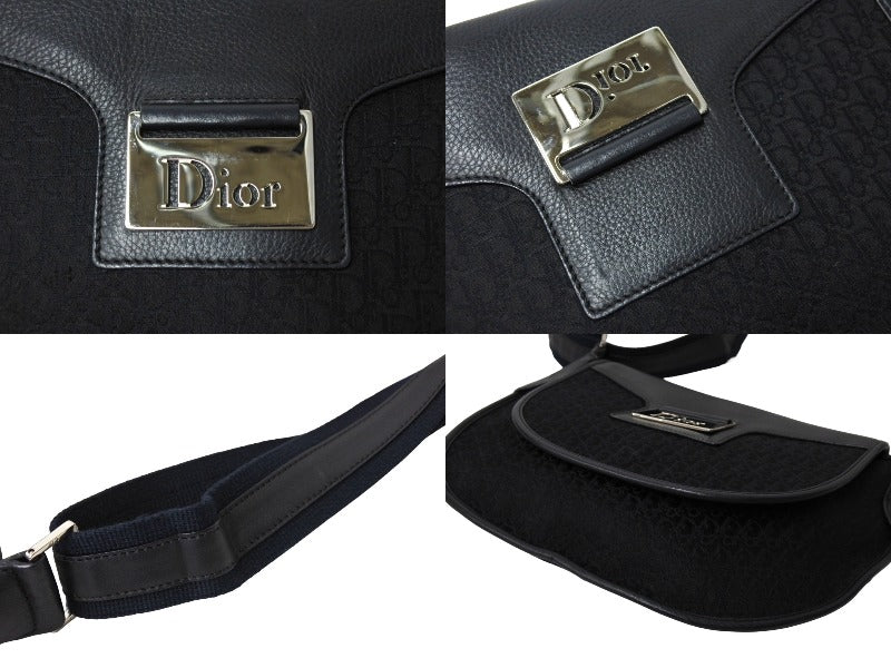 Christian Dior クリスチャンディオール ショルダーバッグ オブリーク柄 ブラック ネイビー キャンバス レザー 美品 中古 66264