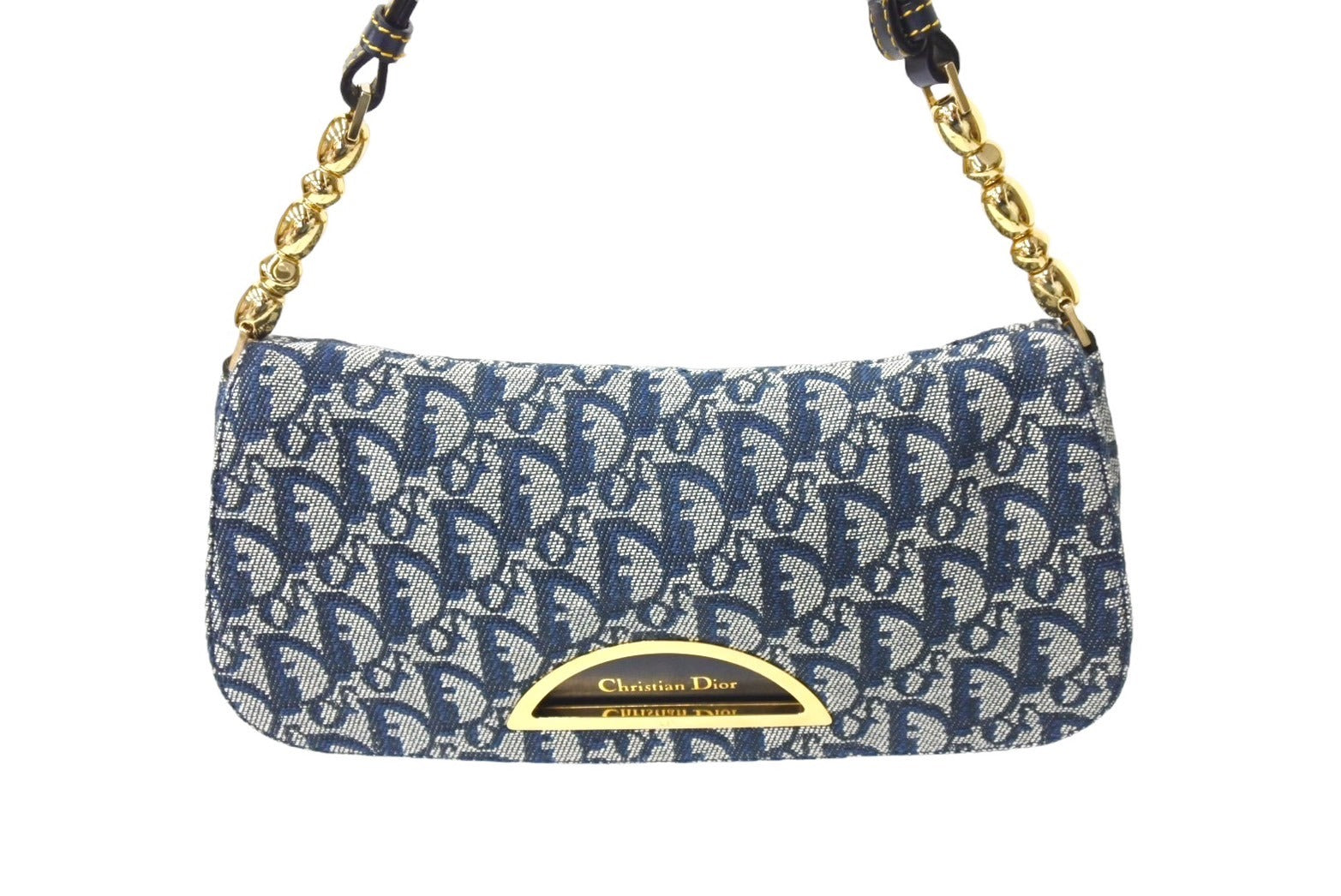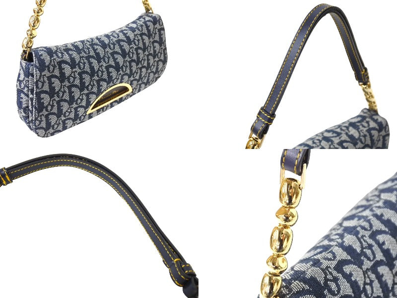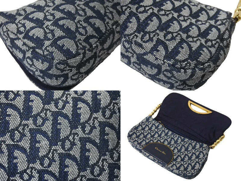 Christian Dior クリスチャンディオール マリスパール ショルダーバッグ ネイビー ロゴ キャンバス 美品 中古 66276