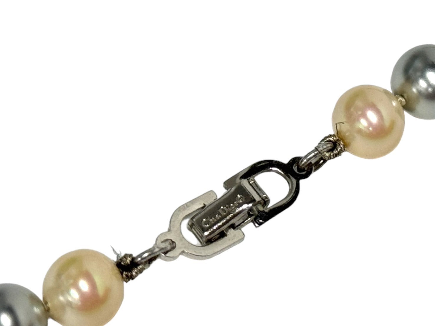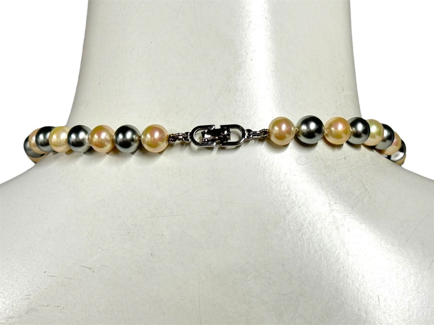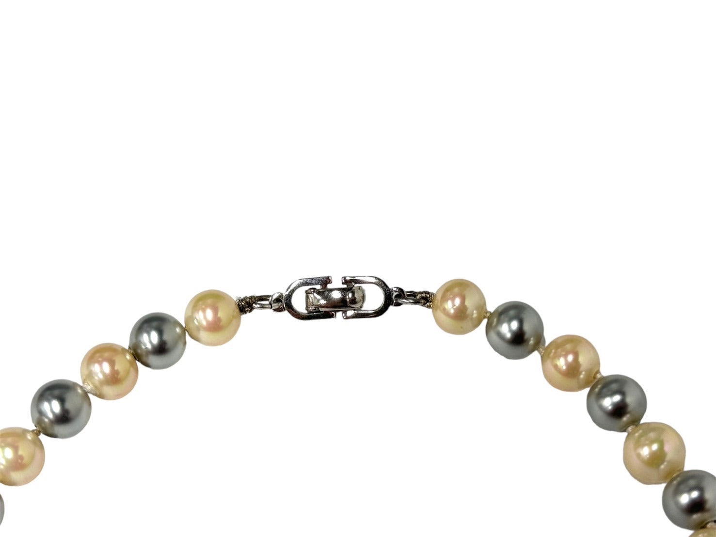 極美品 Christian Dior クリスチャンディオール チョーカー パールネックレス 7.7mm GP パール グレー ベージュ 中古 66343