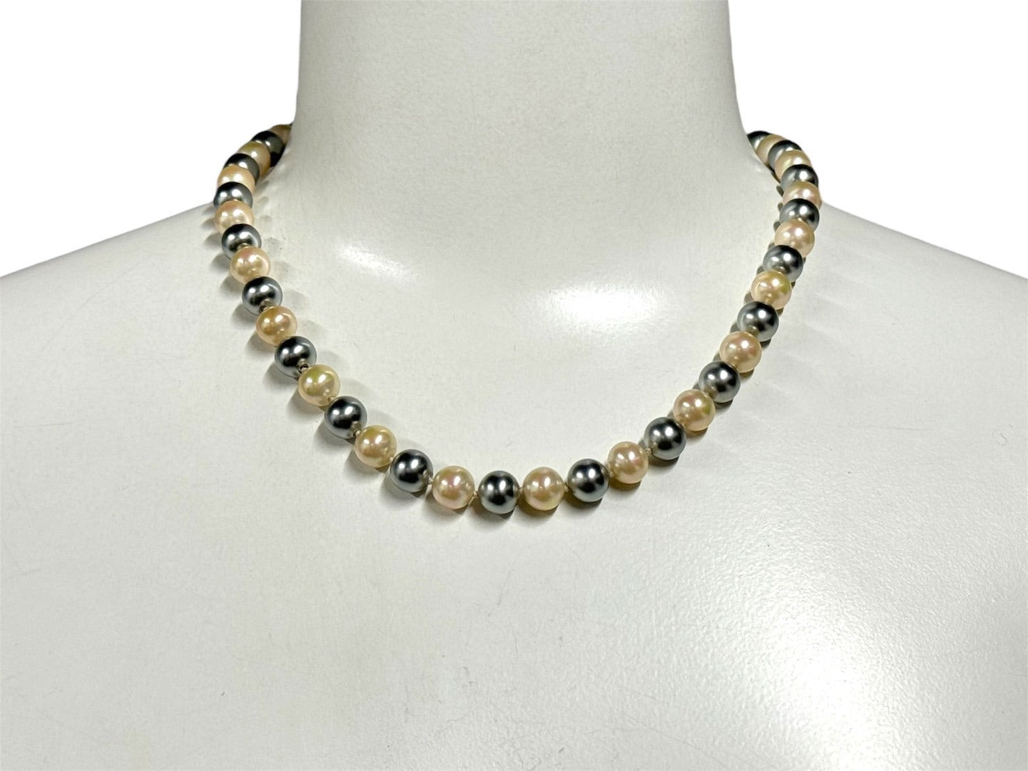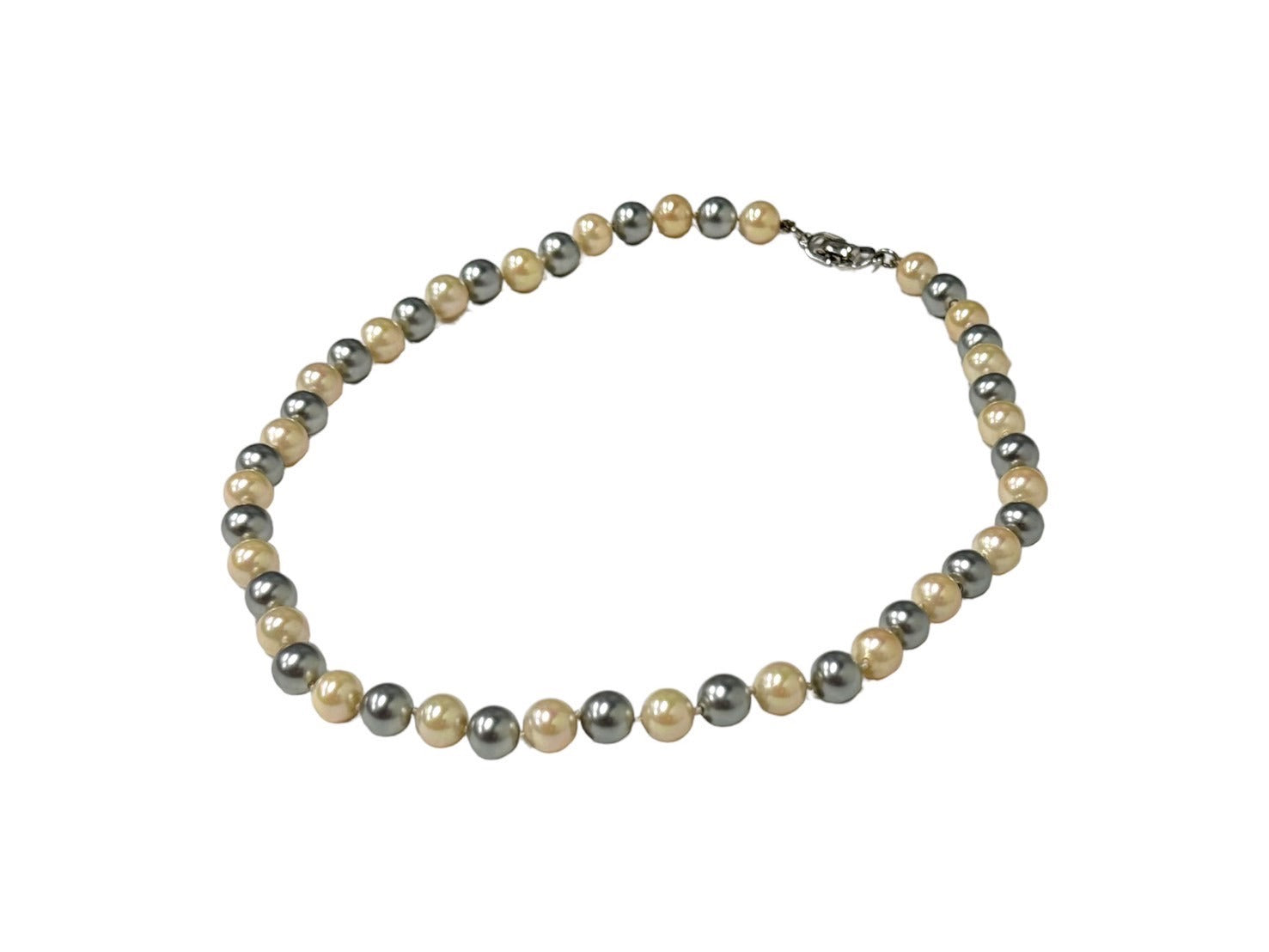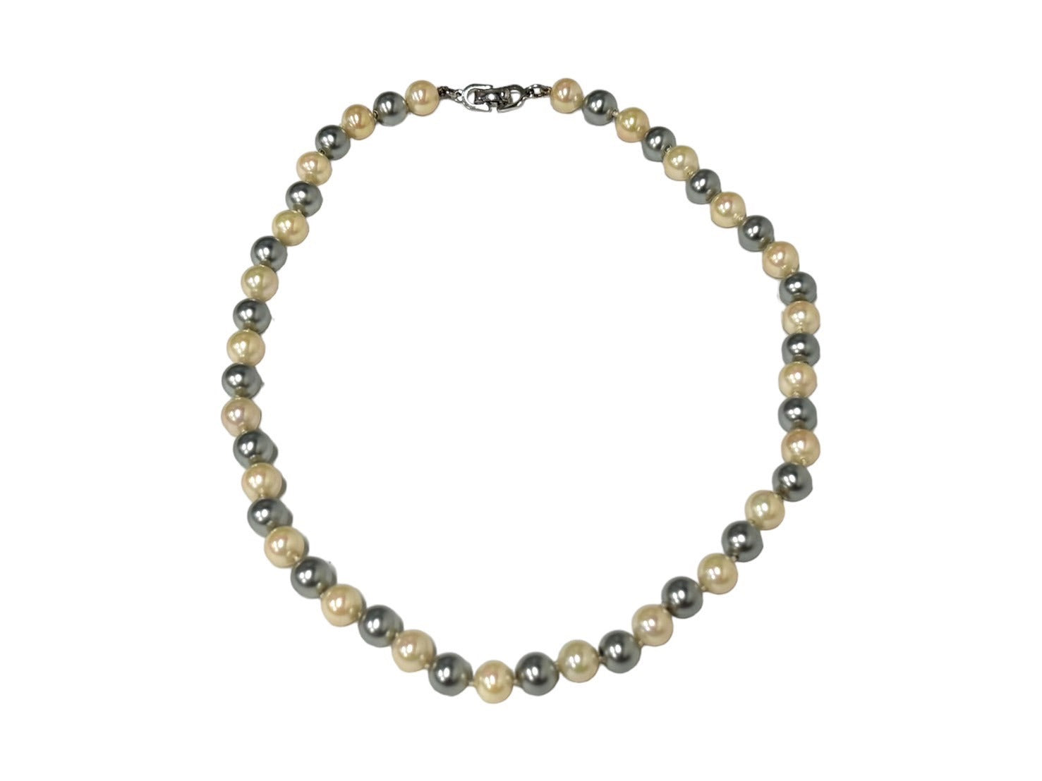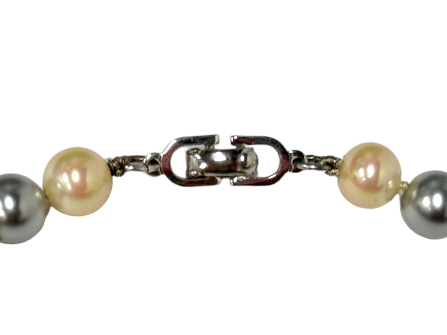 極美品 Christian Dior クリスチャンディオール チョーカー パールネックレス 7.7mm GP パール グレー ベージュ 中古 66343