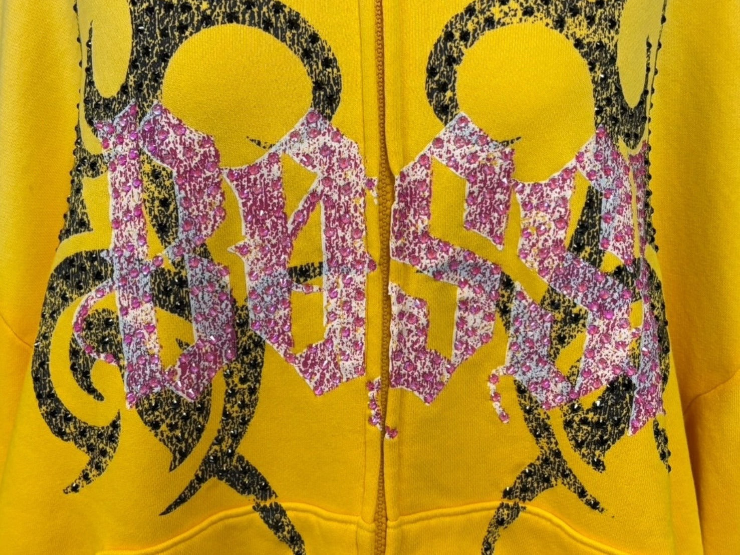 新品未使用 BOSSI SPORTSWEAR ボッシ スポーツウェア ジップアップフーディー サイズL ラインストーン スタッズ イエロー 中古 sssss