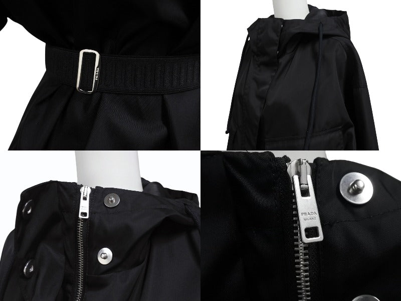 極美品 PRADA プラダ Re-Nylon リナイロン トライアングルロゴプレート フーデッドジャケット 292255 S000 1WQ8 ブラック サイズ36 中古 4b006250