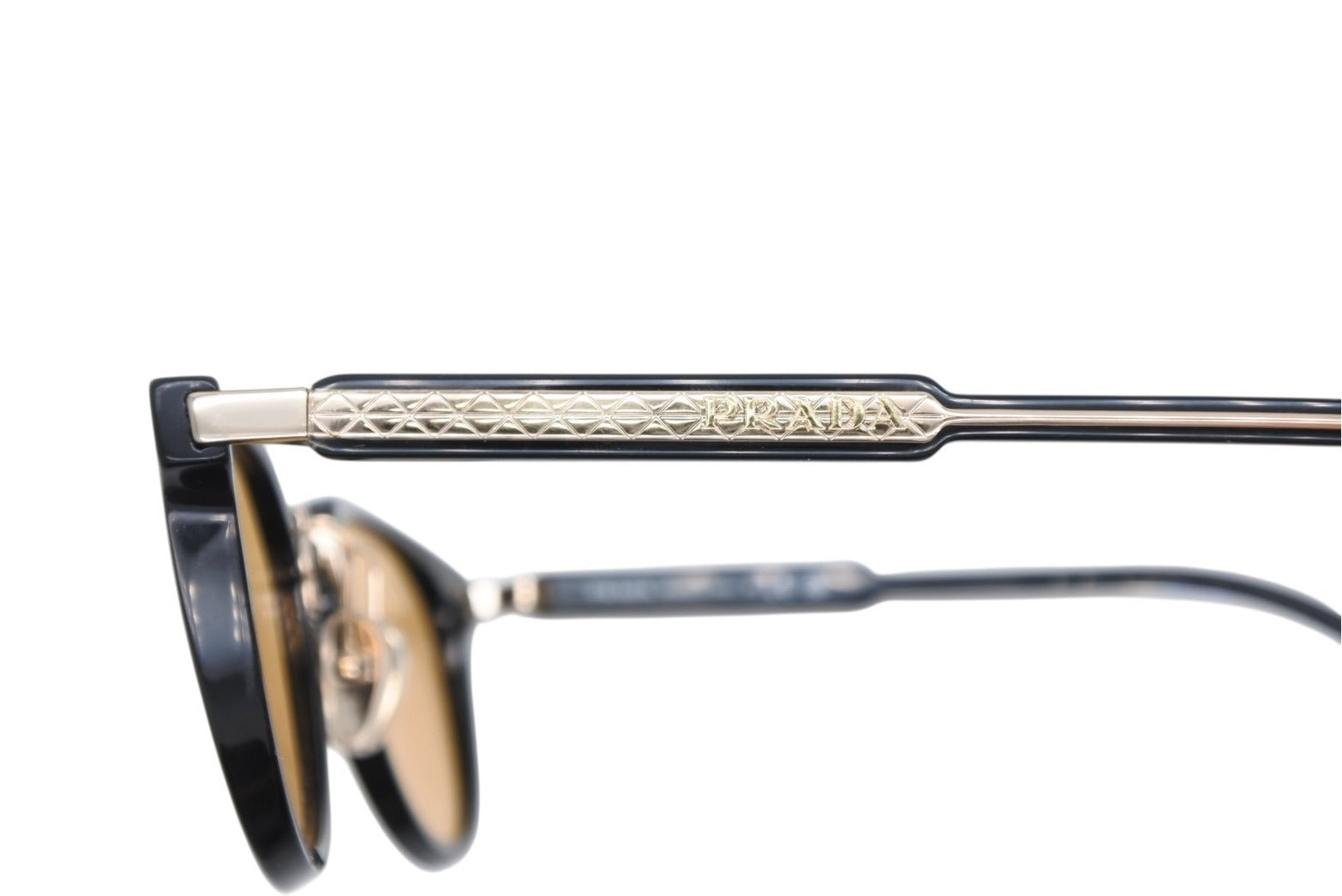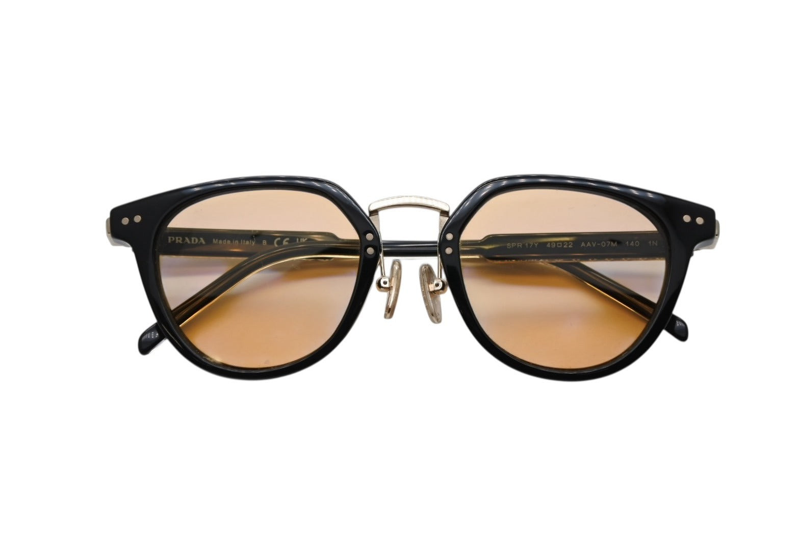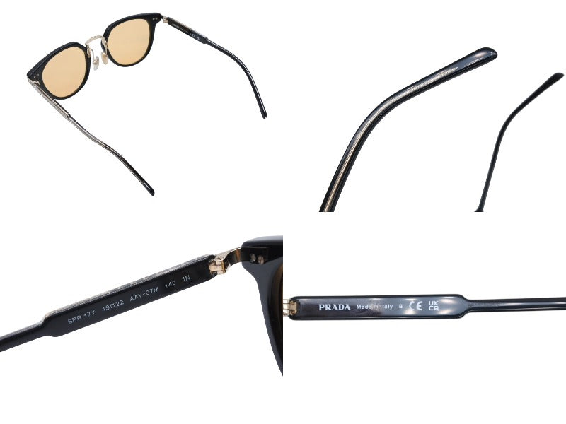 PRADA プラダ ロゴ サングラス SPR 17Y クリスタルマスタードイエローレンズ ブラック ゴールド金具 サイズ49□22 美品 中古 4b007087