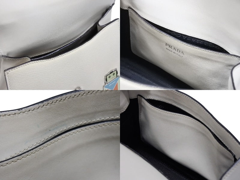 PRADA プラダ ロボット モノクローム チェーンショルダーバッグ 1BD127 サフィアーノレザー アイボリー シルバー金具 良品 中古 4b007961