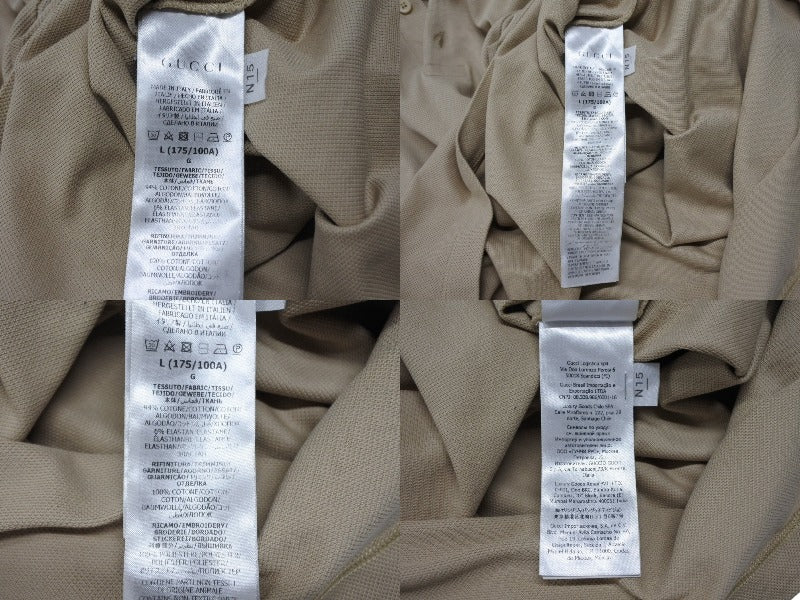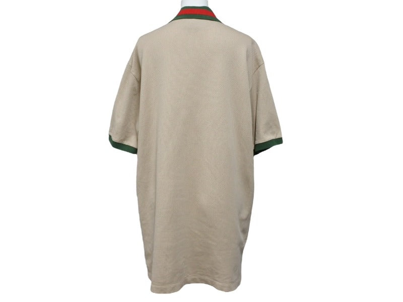 GUCCI グッチ Polo Shirt シェリーライン ストレッチポロシャツ サイズL ベージュ コットン 美品 中古 4b006900