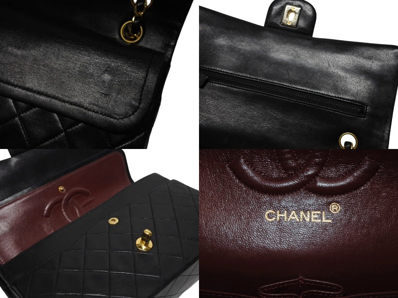 CHANEL シャネル マトラッセ25 Wフラップ Wチェーンショルダーバッグ 0番台 ココマーク ラムスキン ゴールド金具 美品 中古 4b009860