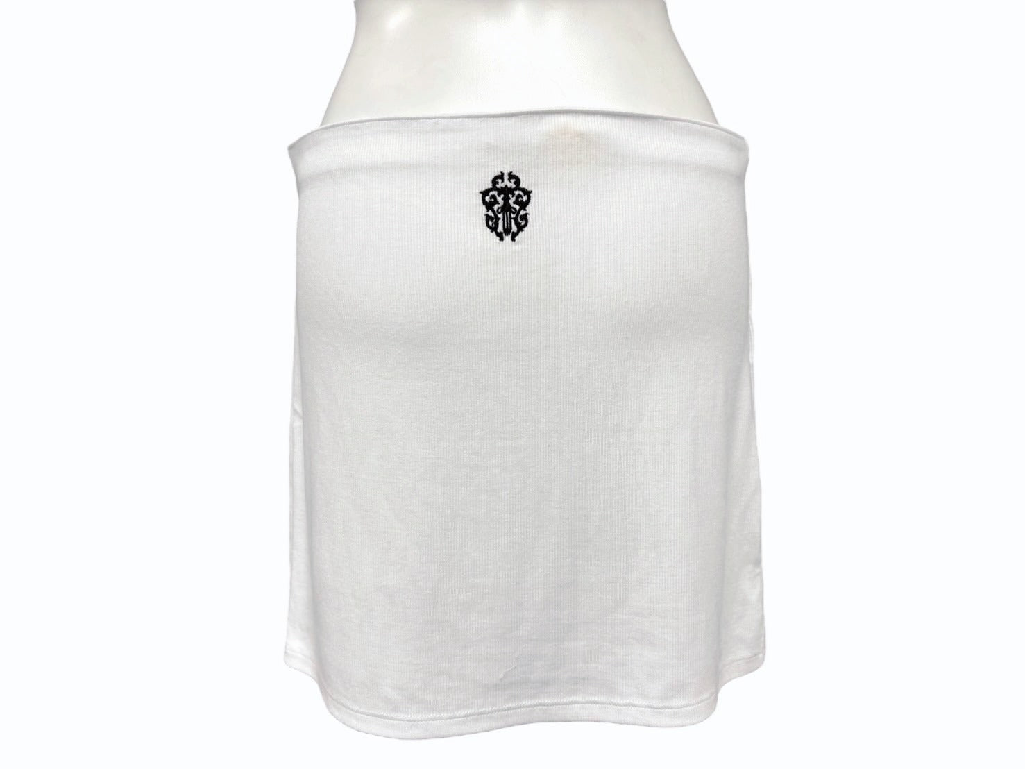 新品未使用 CHROME HEARTS クロムハーツ GRP Y NOT SKIRT W BAD SEED MINI Yノット ミニスカート サイズM ホワイト ダガー刺繍 中古 4b008715