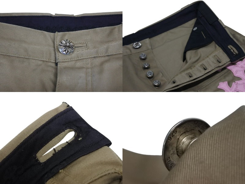 CHROME HEARTS クロムハーツ CARPENTER DOUBLE KNEE カーペンター ダブルニーパンツ サイズ34 クロスボール シルバー925 ベージュ ピンク 美品 中古 4b009772