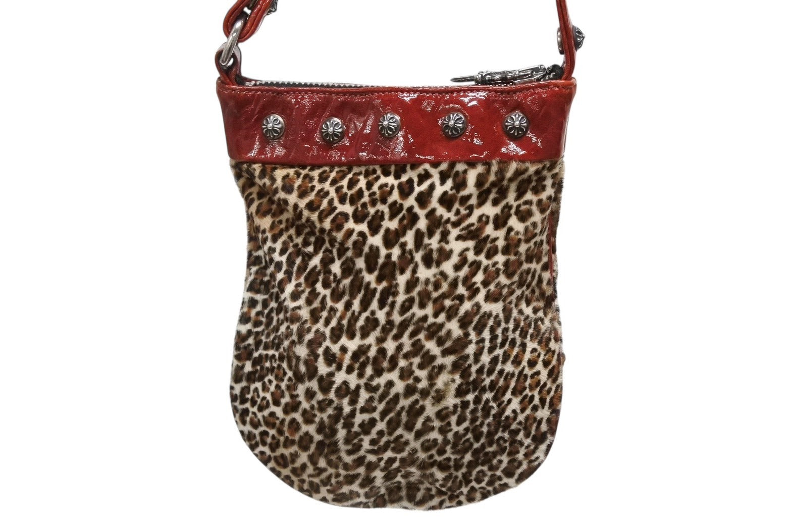 極美品 CHROME HEARTS クロムハーツ ミニハンドバッグ クロスボール ハラコレザー レオパード シルバー金具 中古 4b009845