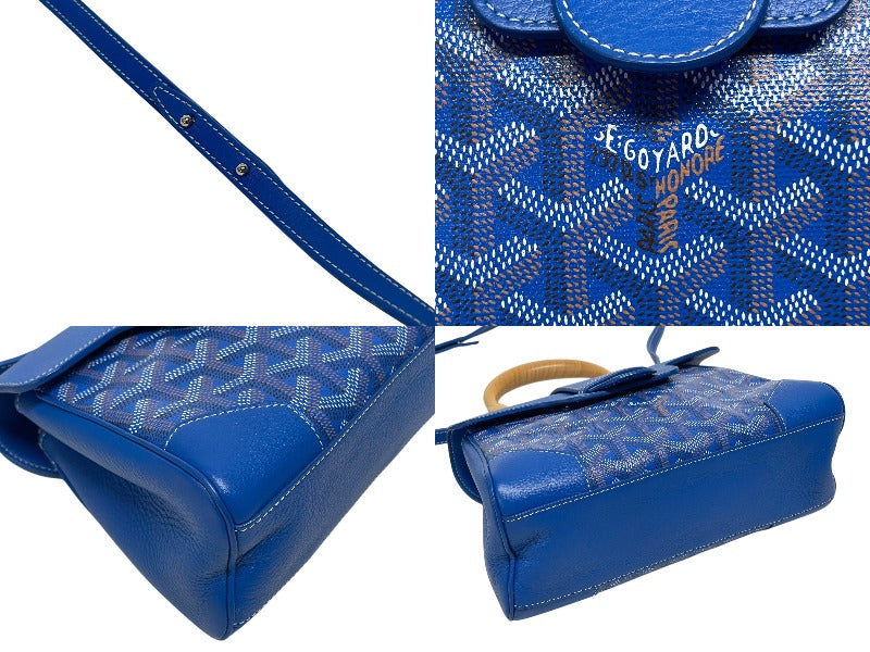 極美品 GOYARD ゴヤール サイゴン ミニ ソフトバッグ 2WAY ハンドバッグ SAIGONMINTY09CL09P ブルー シルバー金具 中古 4b009476