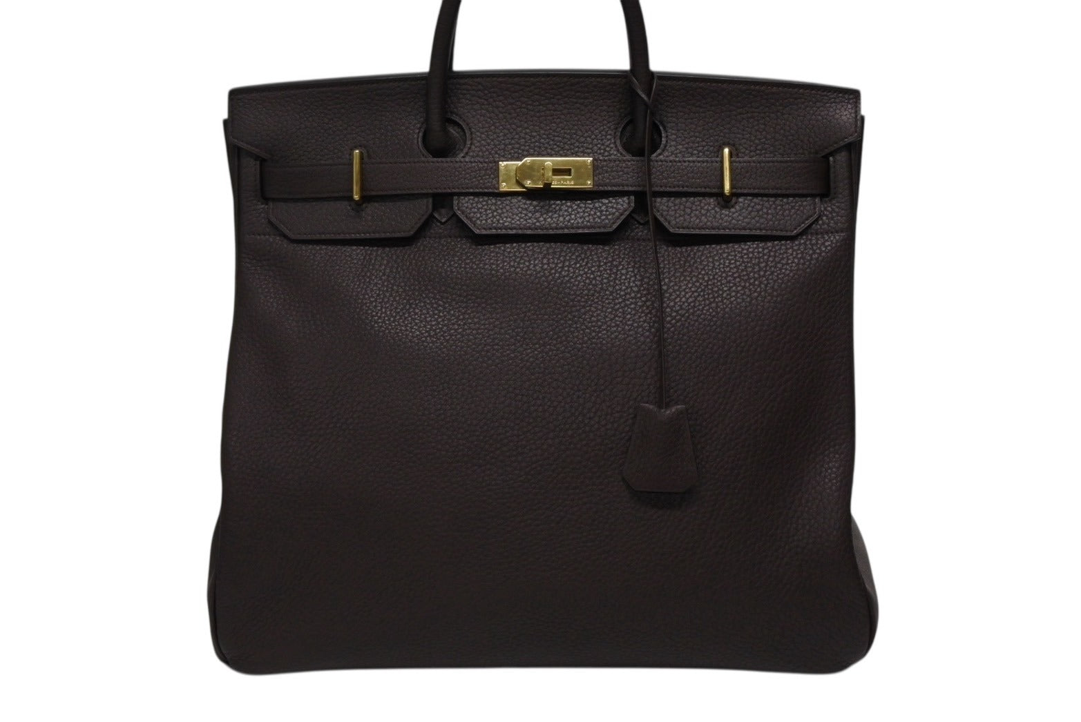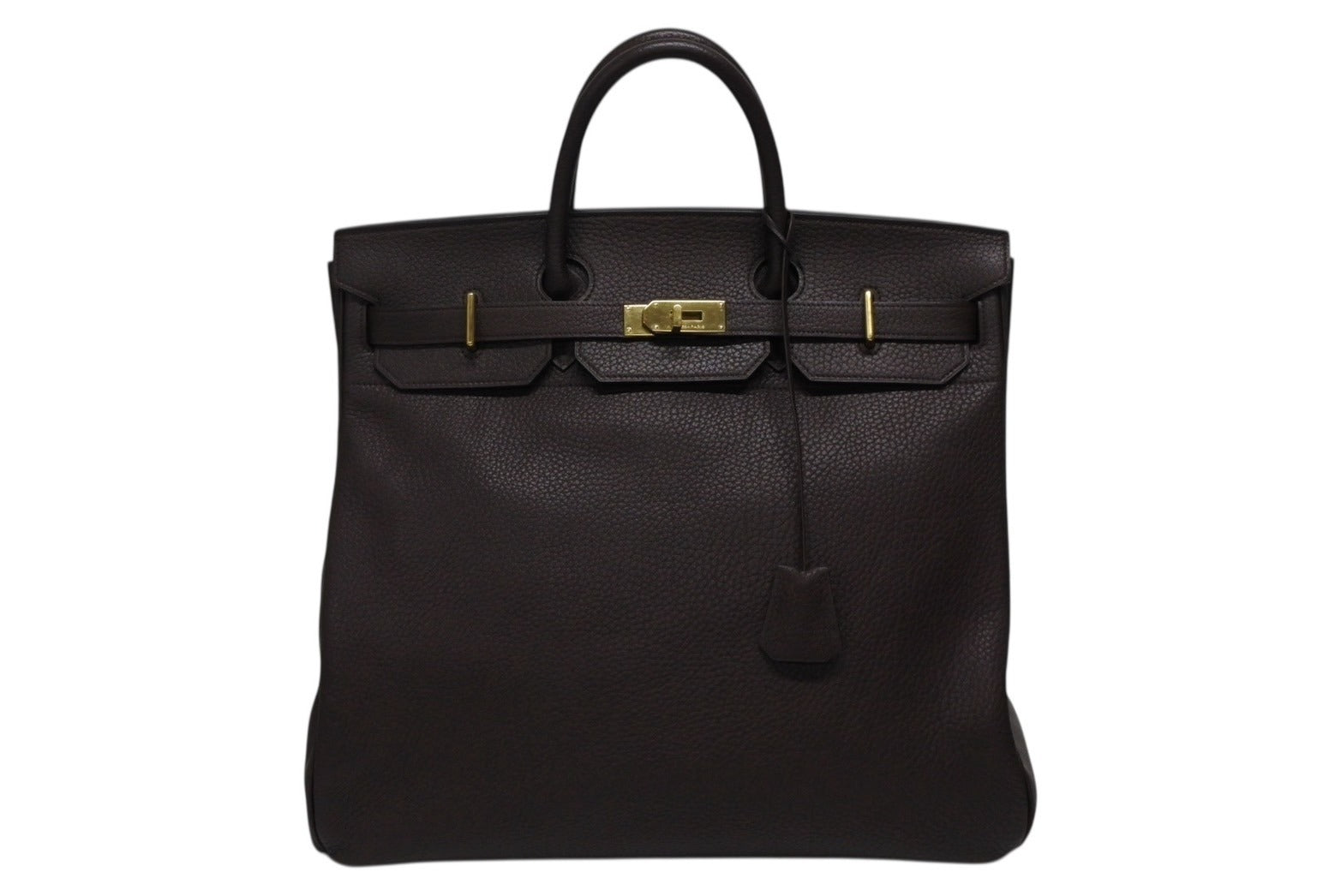 極美品 HERMES エルメス Haut a Courroies オータクロア45 ハンドバッグ フィヨルド ハバナ ゴールド金具 ◻︎B刻印 中古 4b008782