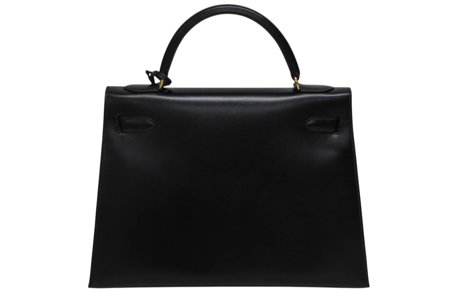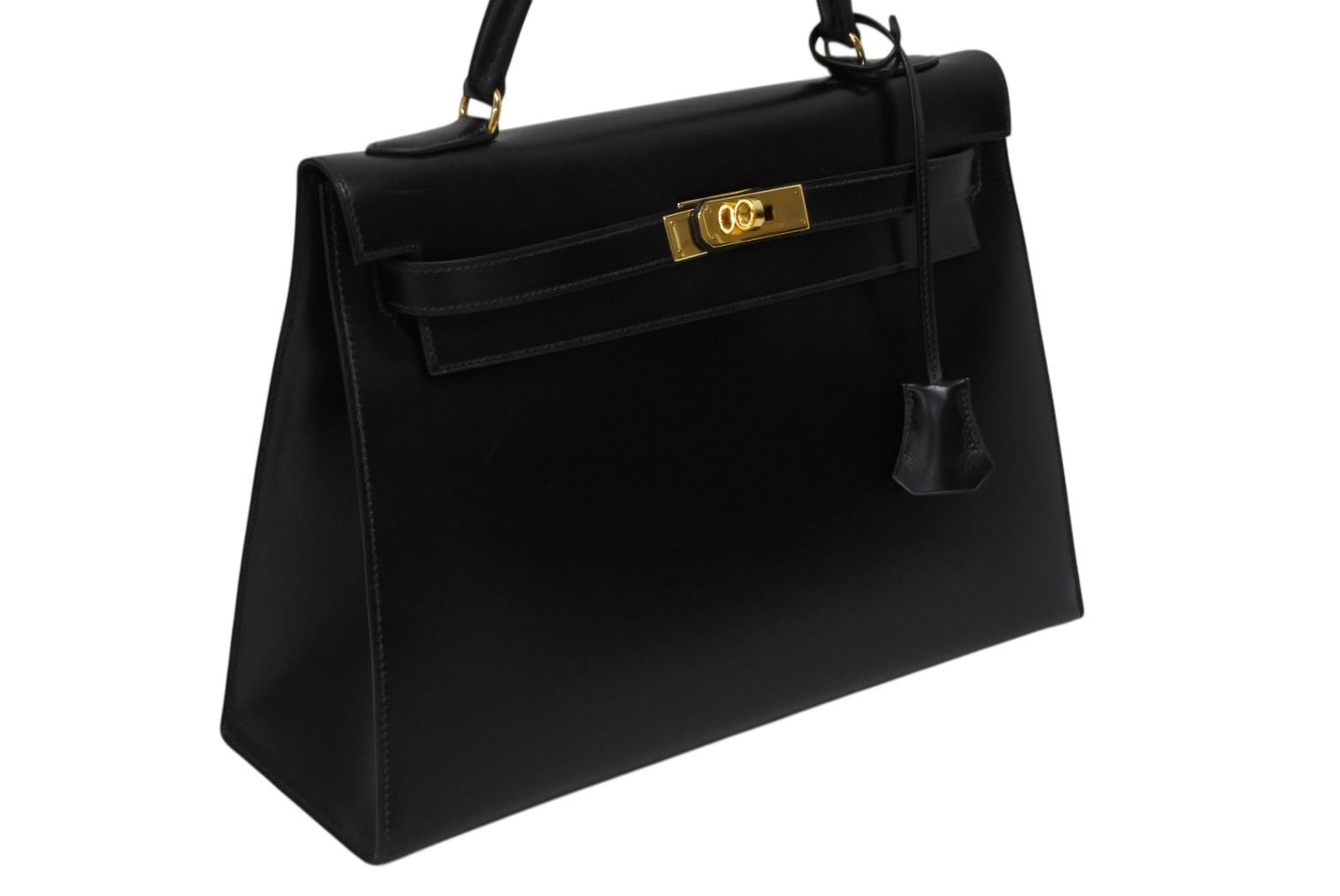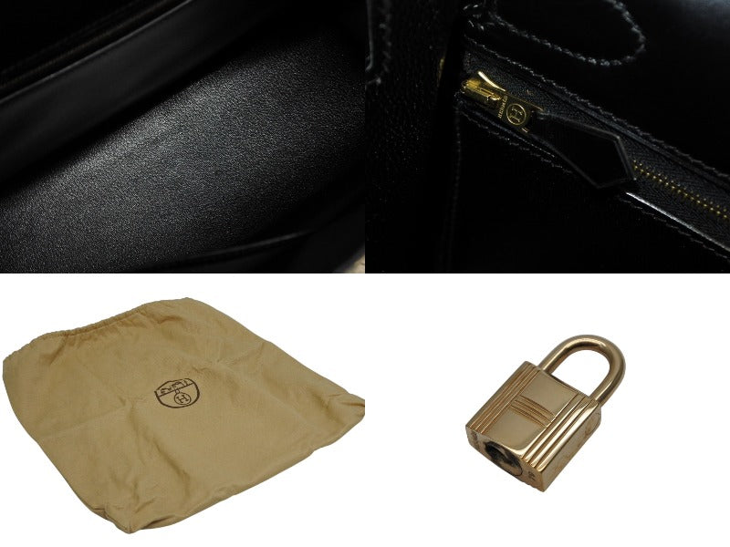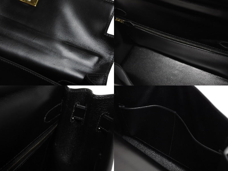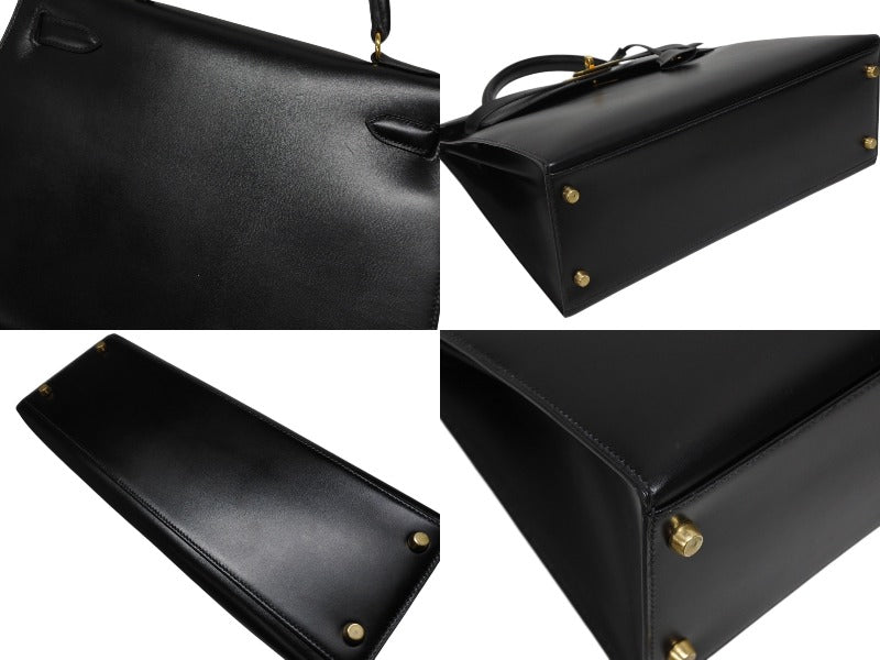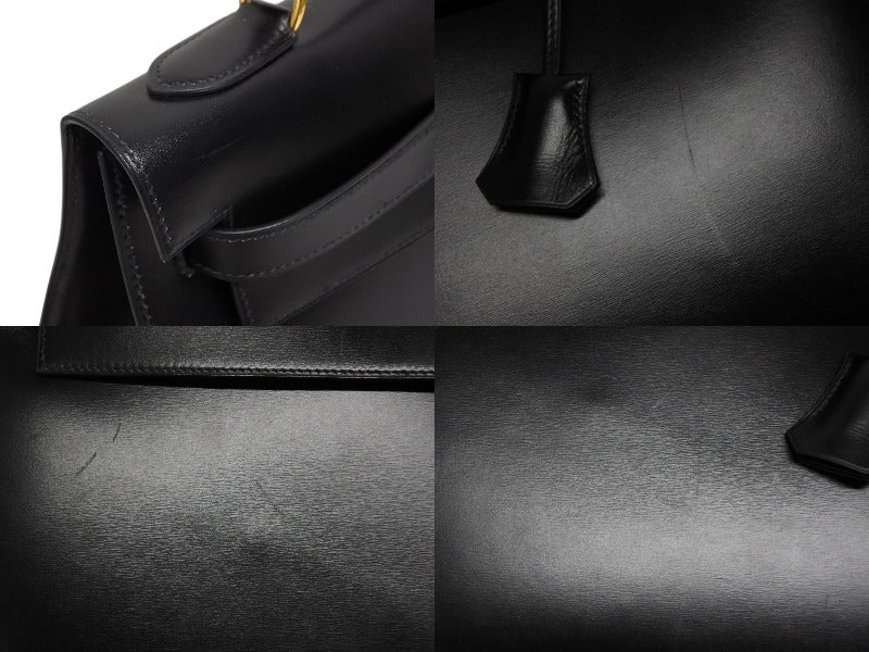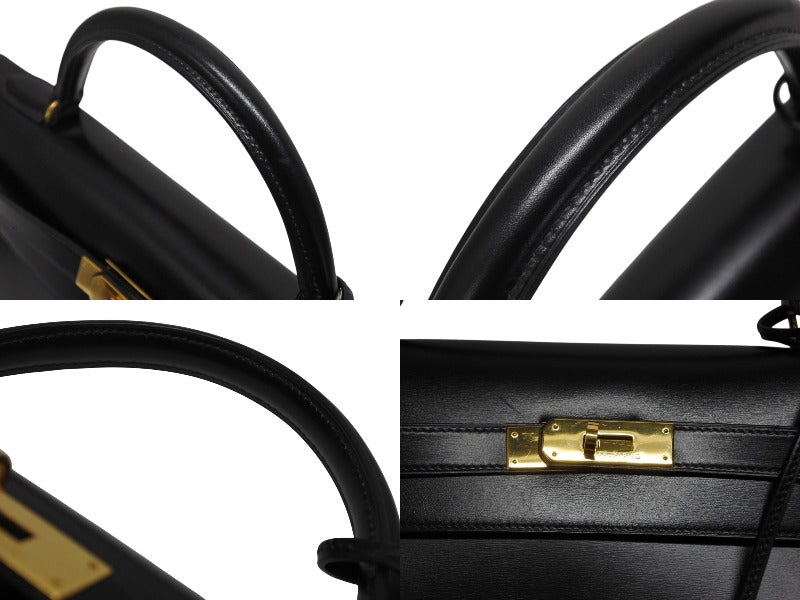 極美品 HERMES エルメス ケリー32 外縫い ブラック ○W刻印 カーフスキン ゴールド金具 ハンドバッグ 2WAY 中古 4b009649