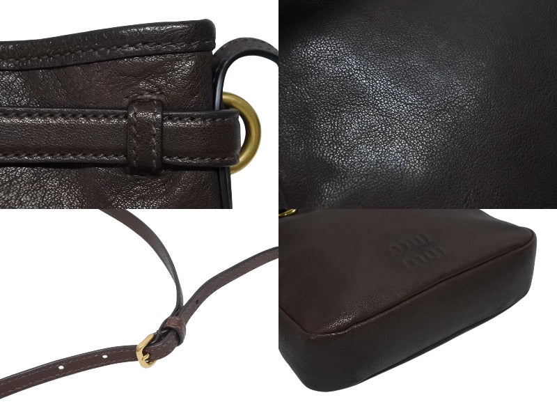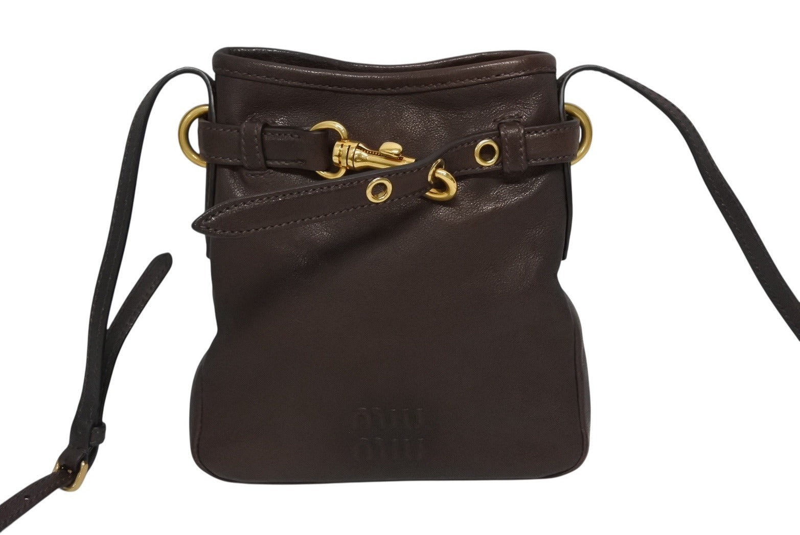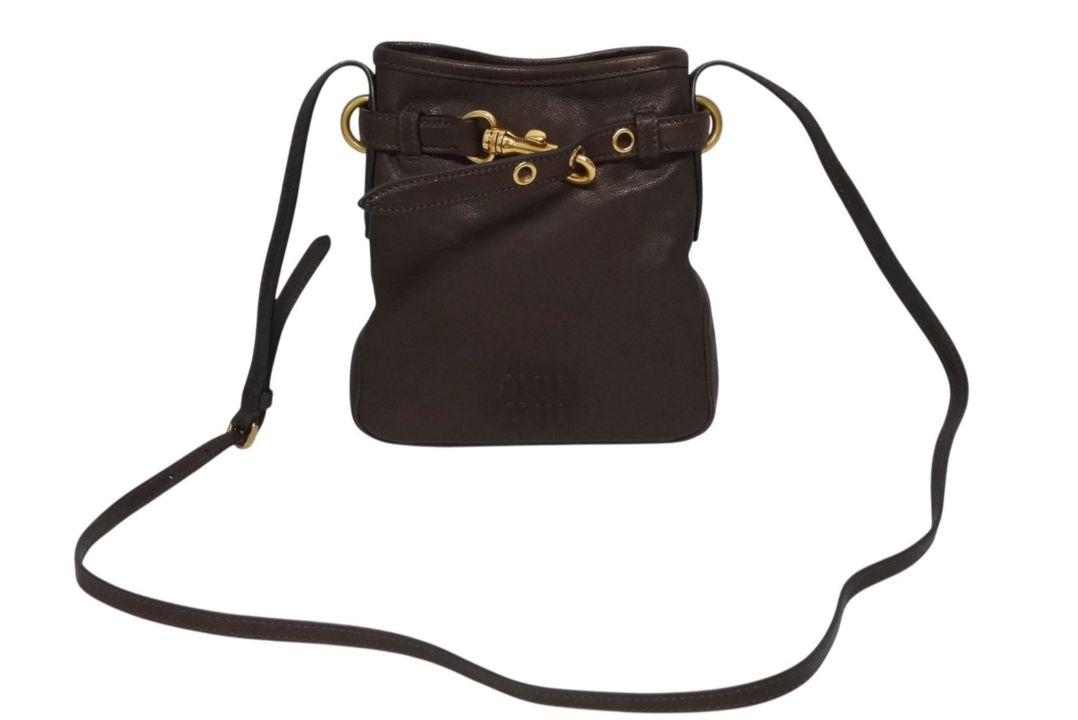アバンギャルドなバッグにインスパイアされたスナップフックのディテールがナッパレザーポーチのデザインに用いられ、ミュウミュウアーカイブを参照したアイコニックなタッチで仕上げました。