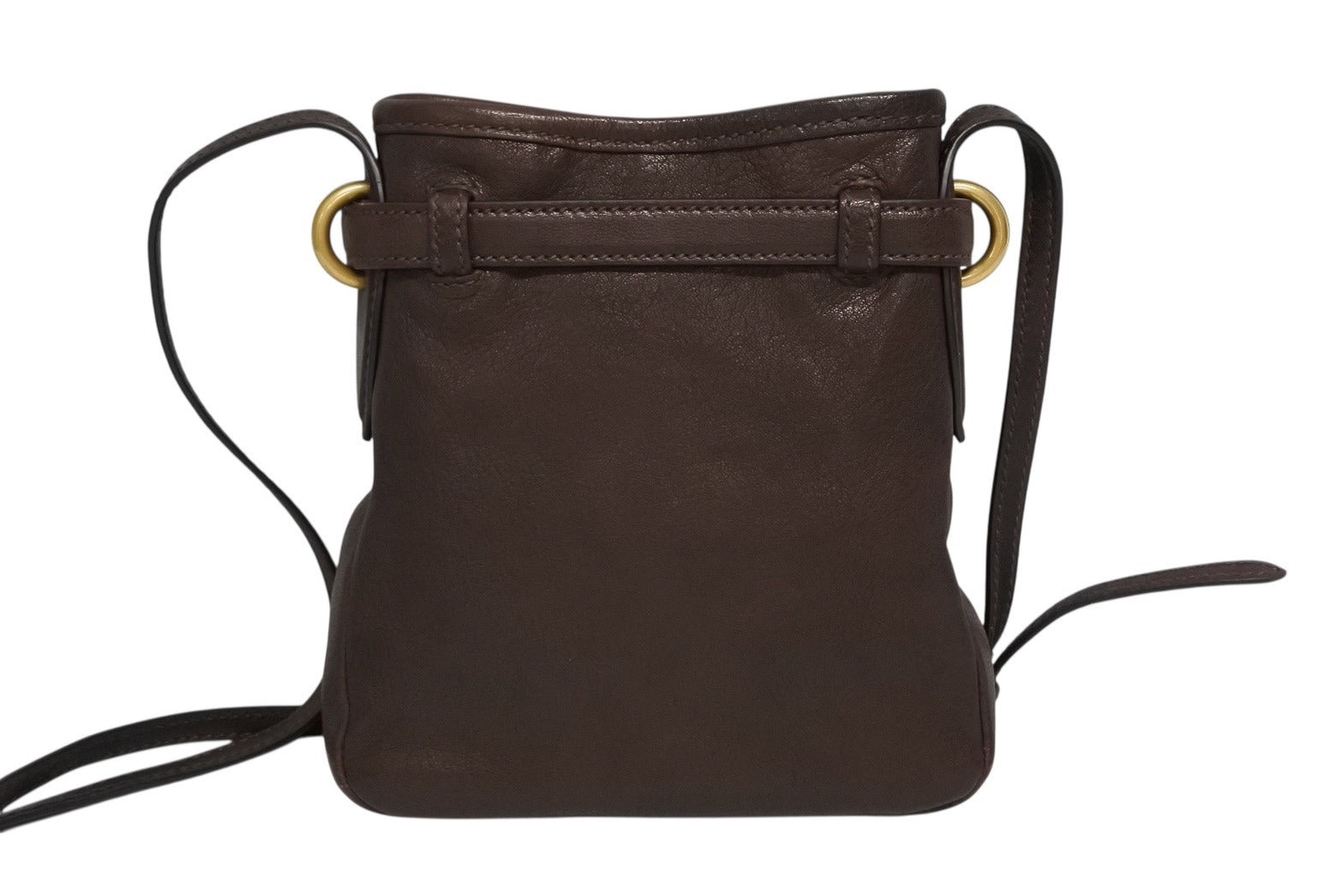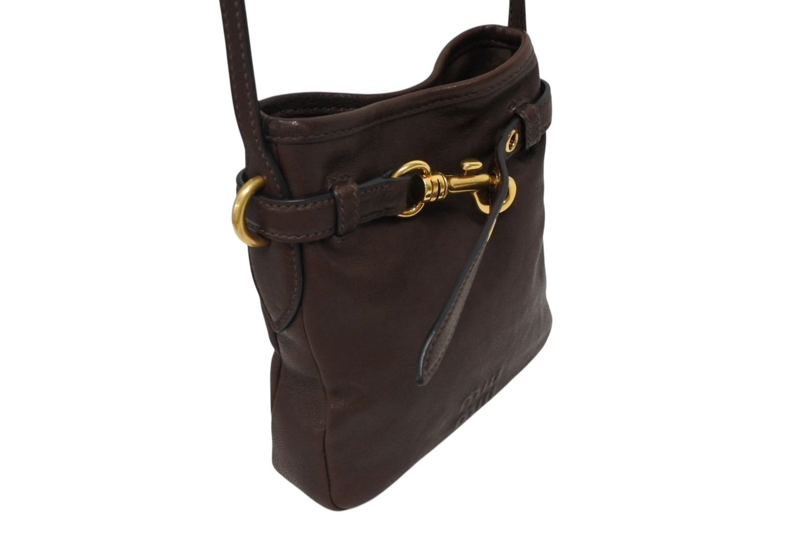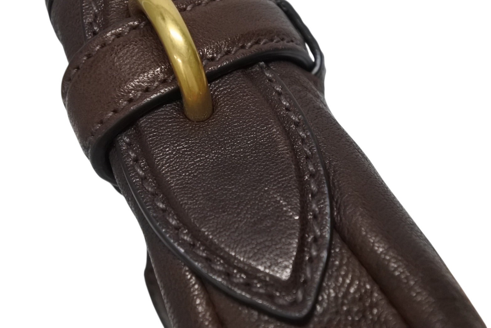 アバンギャルドなバッグにインスパイアされたスナップフックのディテールがナッパレザーポーチのデザインに用いられ、ミュウミュウアーカイブを参照したアイコニックなタッチで仕上げました。
