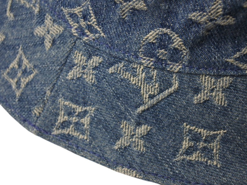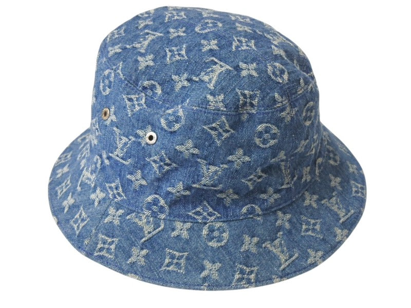 LOUIS VUITTON ルイヴィトン バケットハット・モノグラム エッセンシャル M78772 ブルー モノグラムキャンバス 美品 中古 4b001792