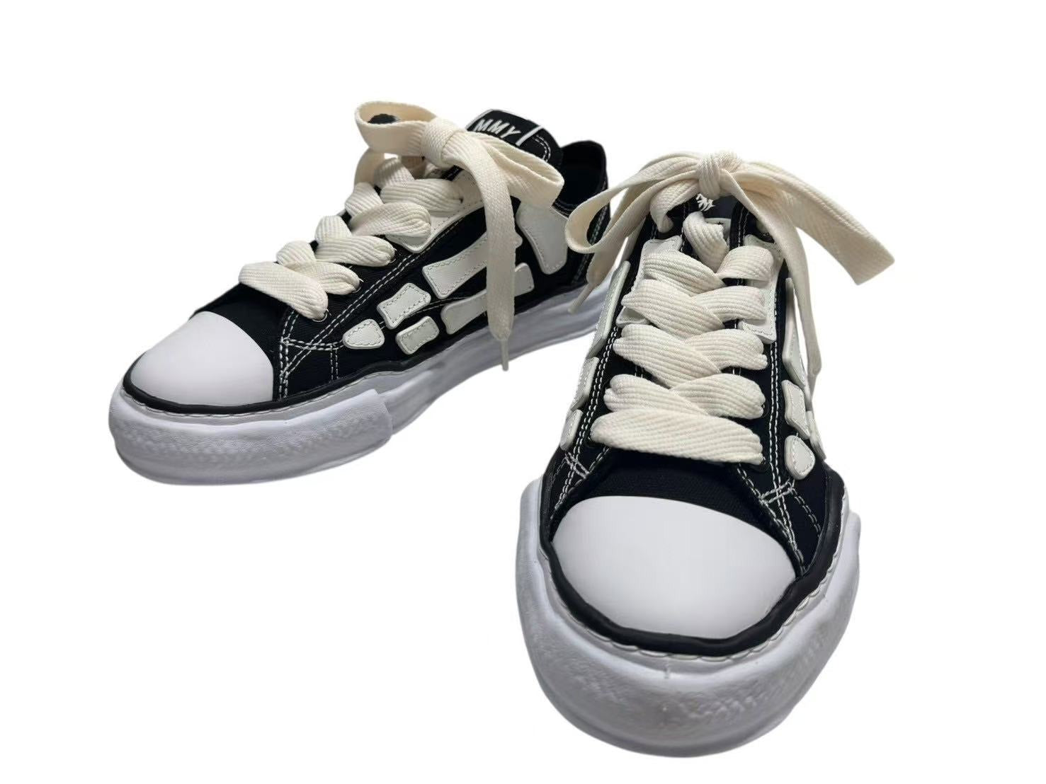 メゾンミハラヤスヒロのスニーカー「ピーターソン」をベースに、アミリのアイコンシューズ「スケルトップロー」のスケルトンデザインをモチーフにアレンジされております。