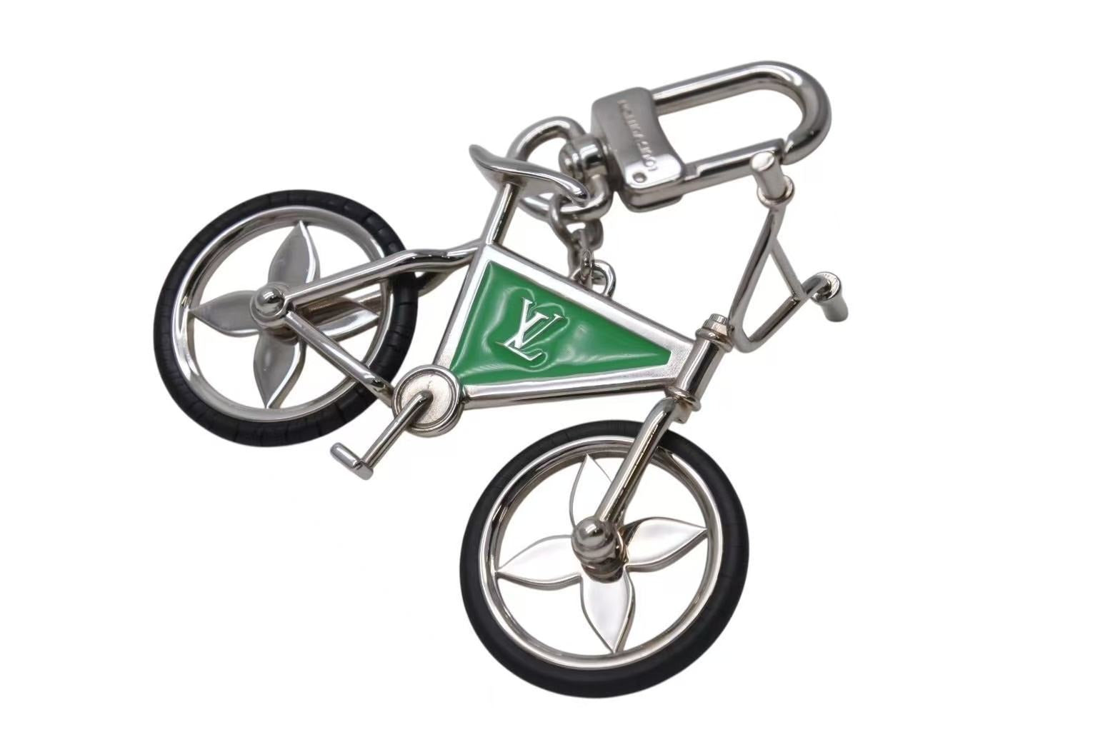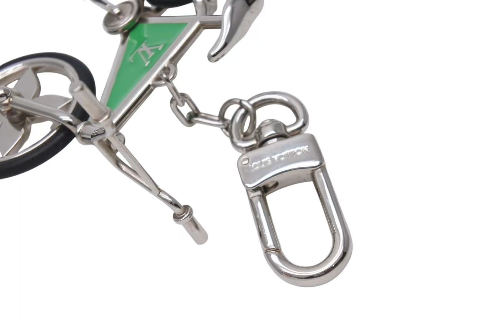 LOUIS VUITTON ルイヴィトン BIJOU DE SAC BIKE ビジューサック バイク チャーム キーホルダー M77148 シルバー グリーン 美品 中古 4b002221