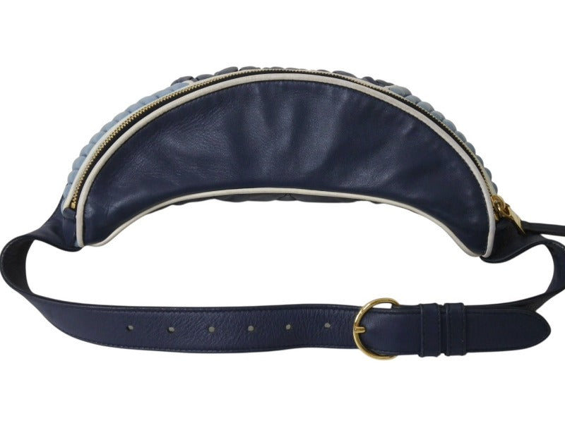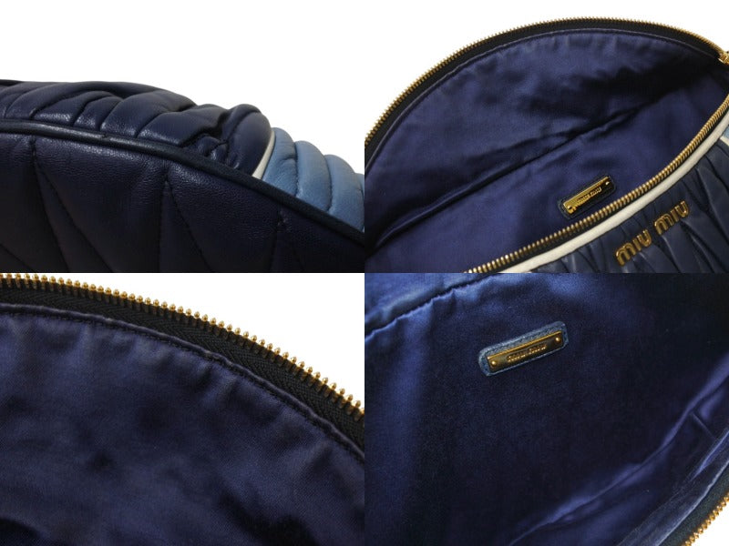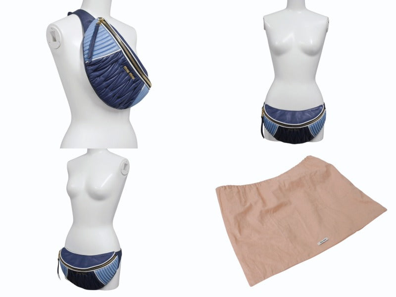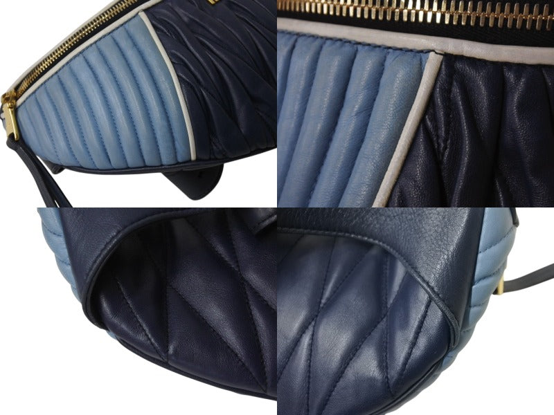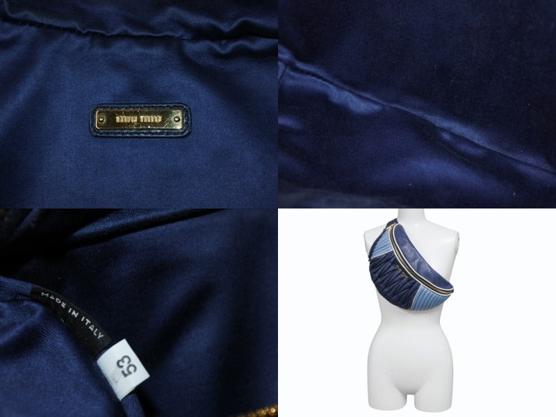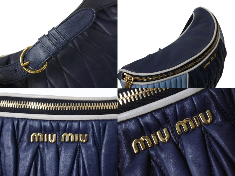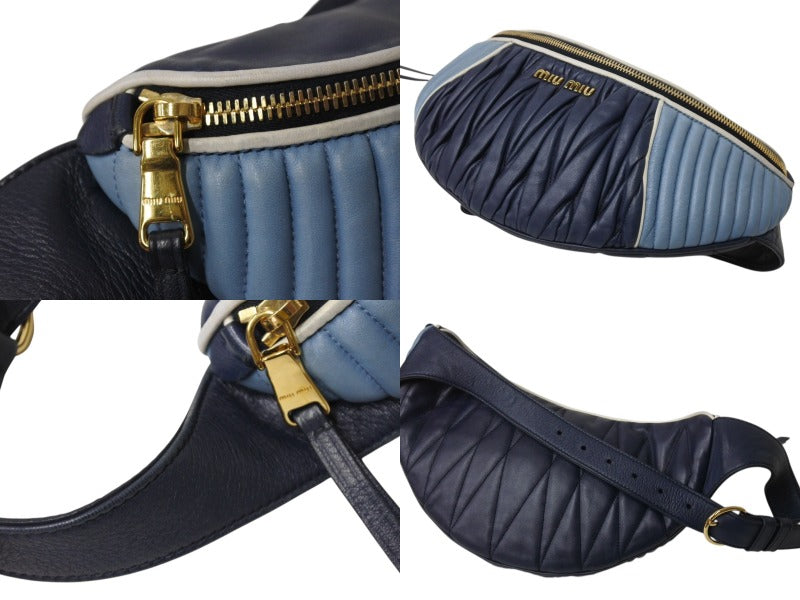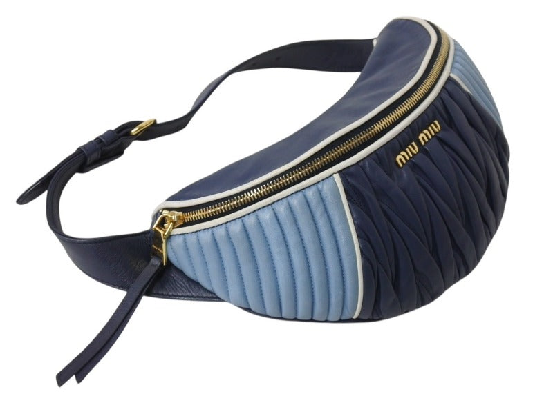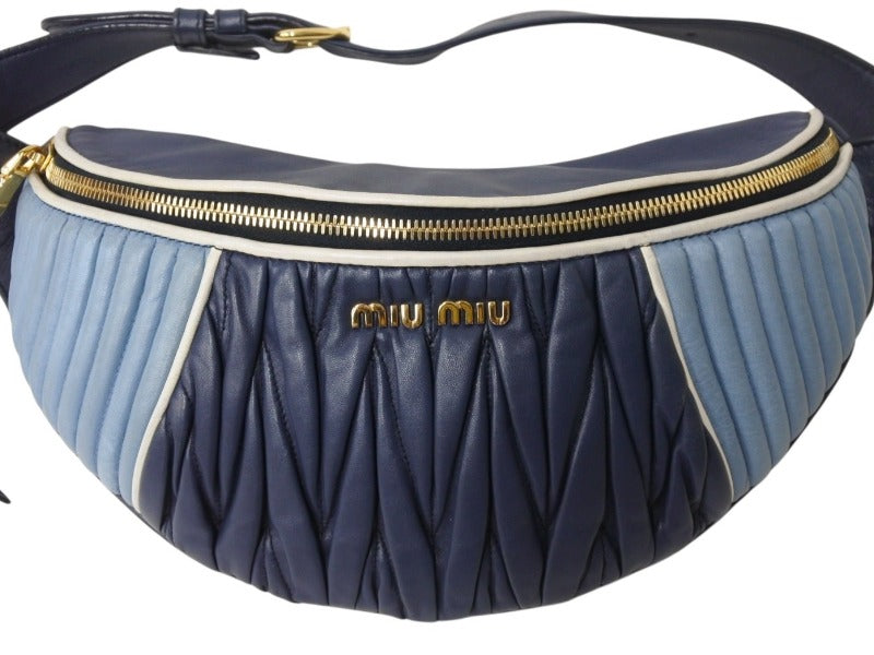 MIUMIU ミュウミュウ マテラッセ レザー ウエストバッグ ブルー ネイビー ボディバッグ ロゴ ツートーン ゴールド金具 美品 中古 4b002786
