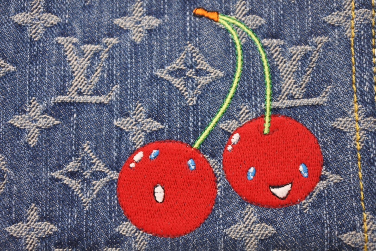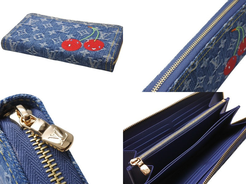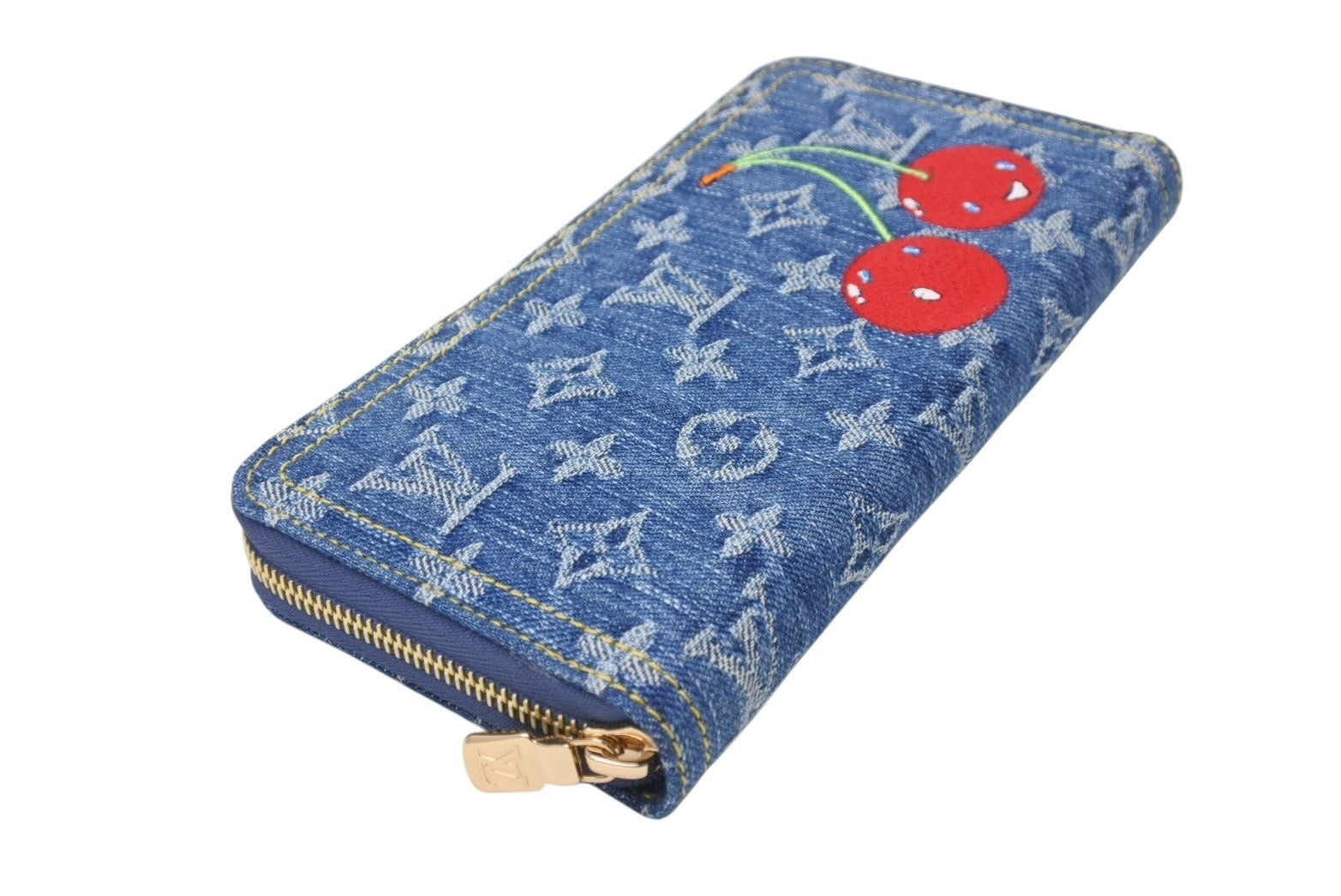 新品未使用 LOUIS VUITTON ルイヴィトン モノグラム デニム ジッピー ウォレット チェリー 新作 M23161 村上隆 ブルー 中古 4b002810