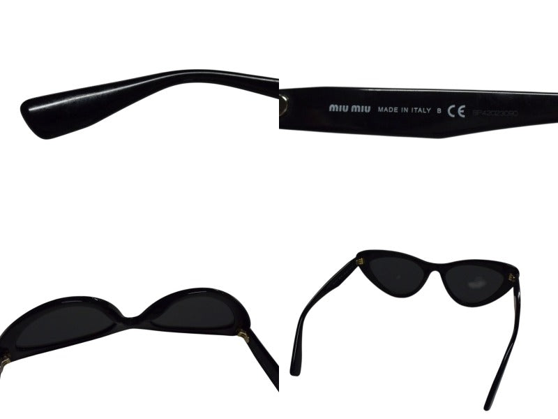 MIUMIU ミュウミュウ キャットアイ サングラス アイウェア SMU01V サイズ55□19 140 ブラック ゴールド 良品 中古 4b003366