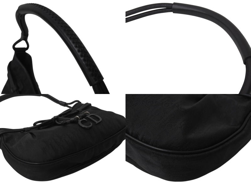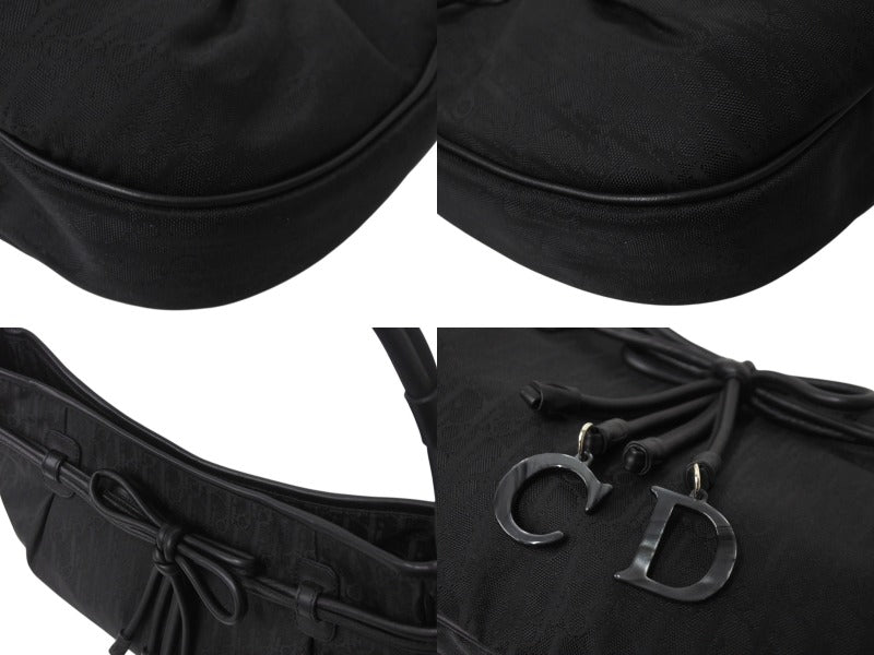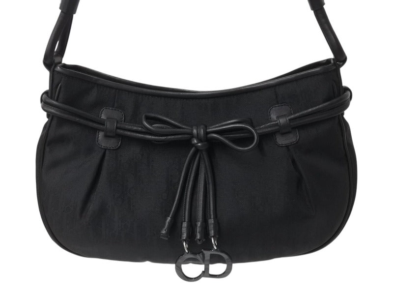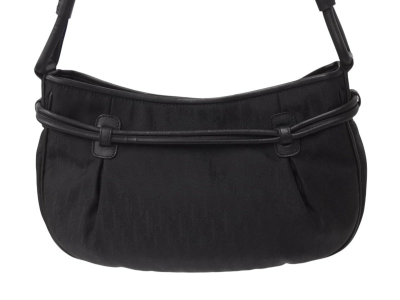 極美品 Christian Dior クリスチャンディオール トロッター柄 ワンショルダーバッグ 05-EO-1017 ジャガード レザー ブラック 中古 4b003589