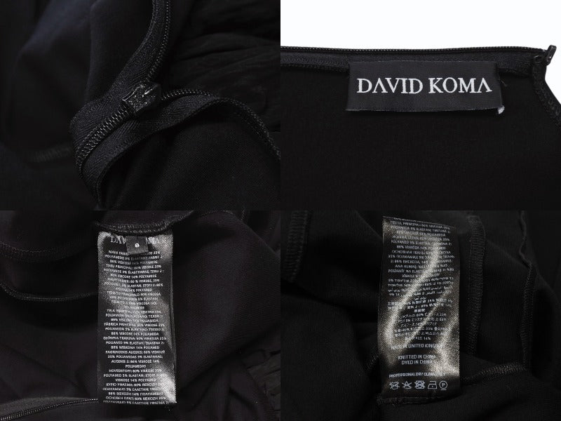 極美品 DAVID KOMA デヴィッド コーマ ミニドレス ワンピース ビスコース ポリアミド エラスタン ブラック サイズ8 中古 4b003999