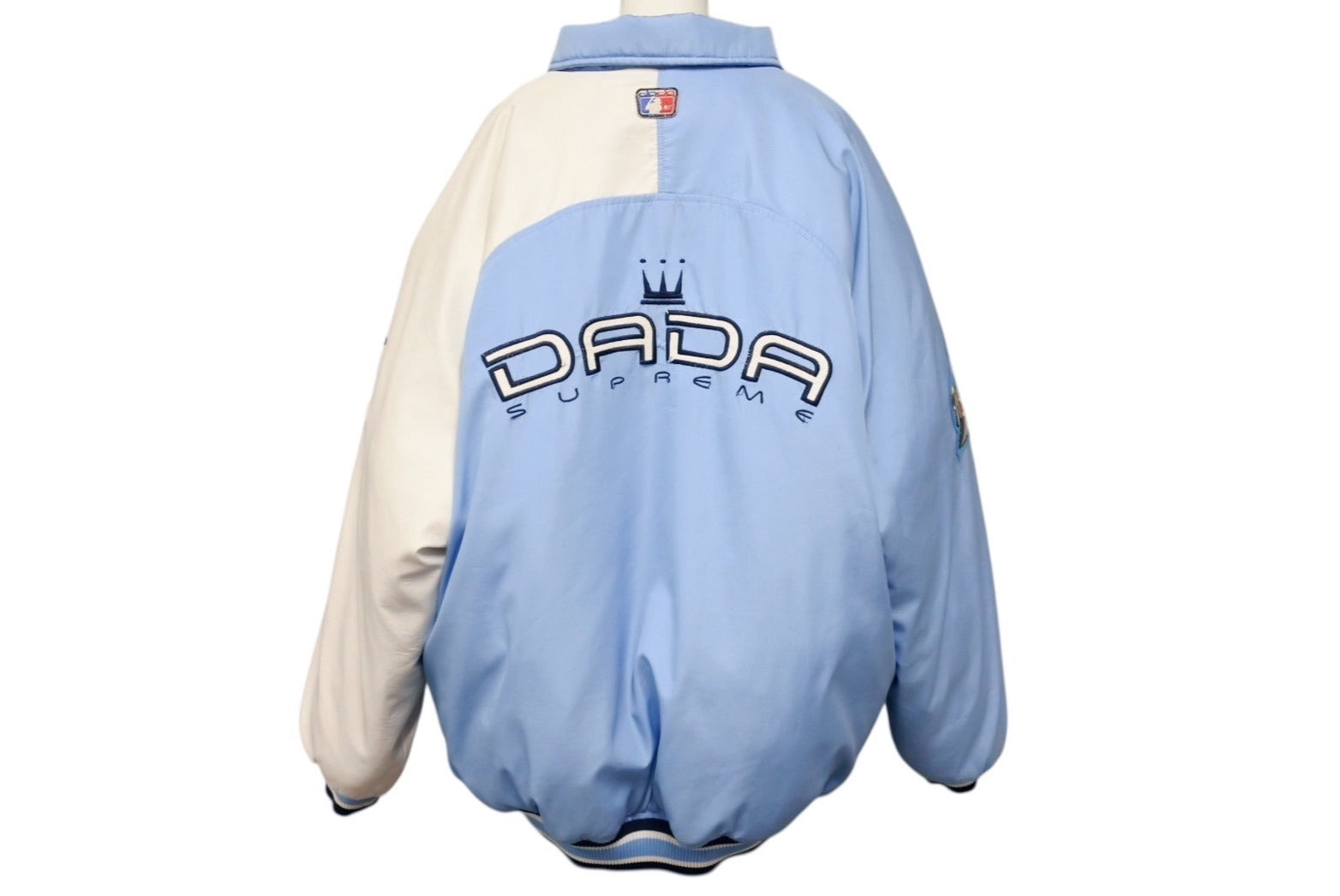 DADA SUPREME ダダシュプリーム ロゴ刺繍 ダウンジャケット シェル ブルー ホワイト サイズXL 美品 中古 4b004710