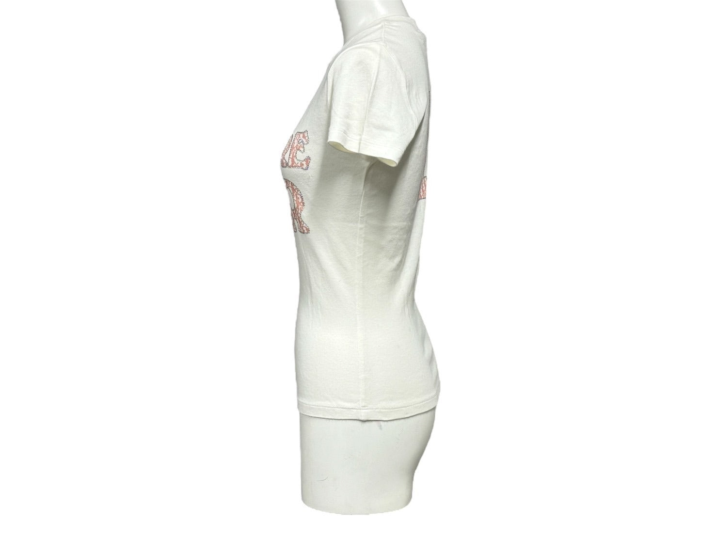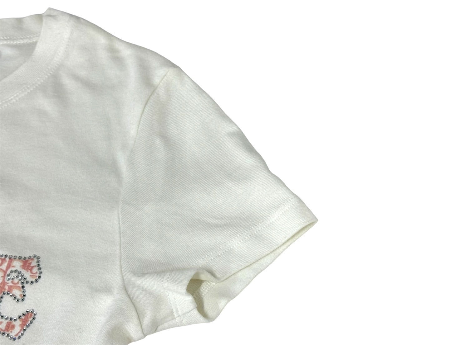 ロゴ部分がトロッター柄になっていて縁がラインストーンで装飾されている可愛らしいデザインのアイテムです。