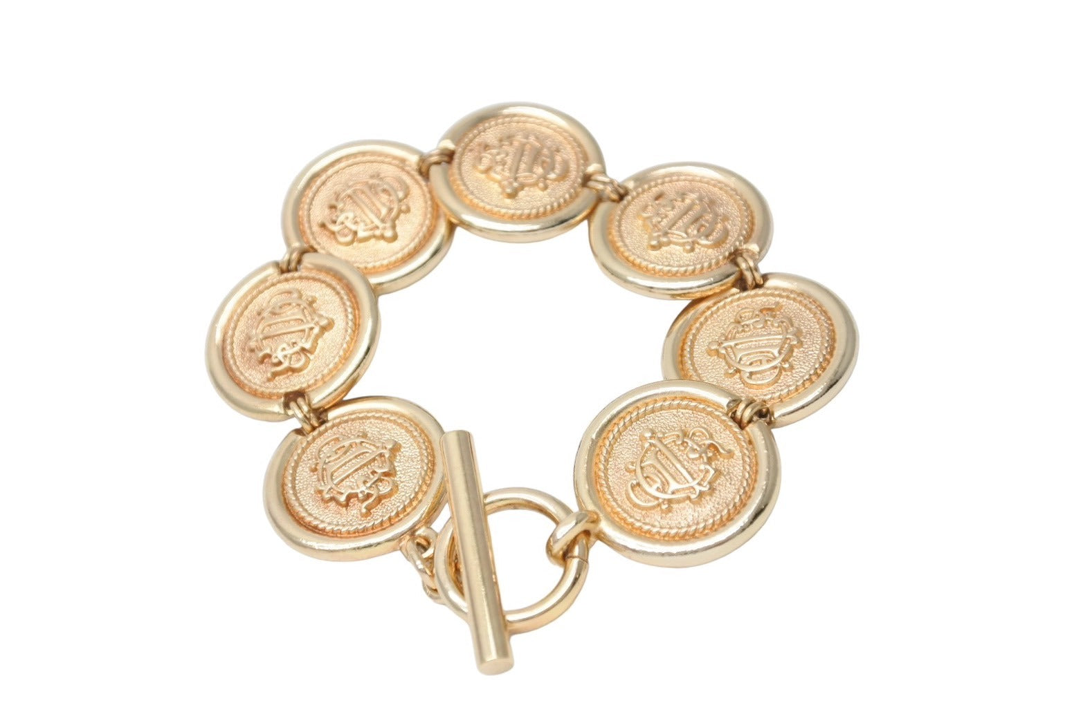 幅広なゴールドカラーブレスレットで高級感があり手元を華やかに演出します。