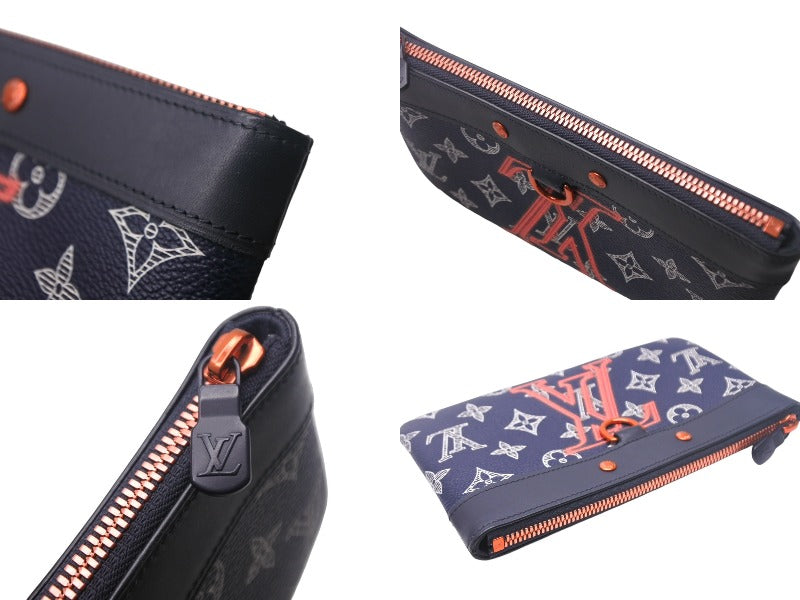 LOUIS VUITTON ルイヴィトン ポシェット アポロPM モノグラムネオン ポーチ アップサイドダウン M62898 ネイビー 美品 中古 4c067897