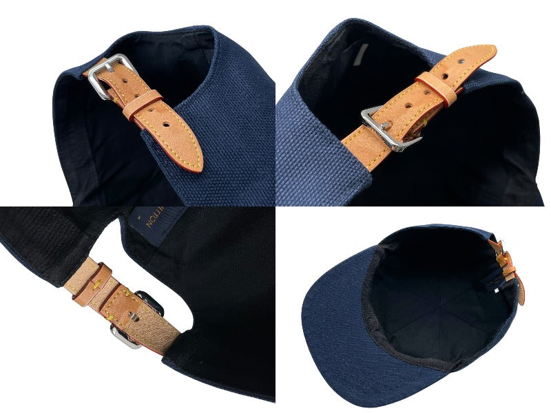 背面サイズ調整レザー部分にシミ、押跡あり。金具部分にスレ、小傷、くすみあり。その他使用感の少ない状態です。