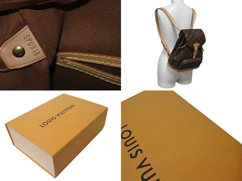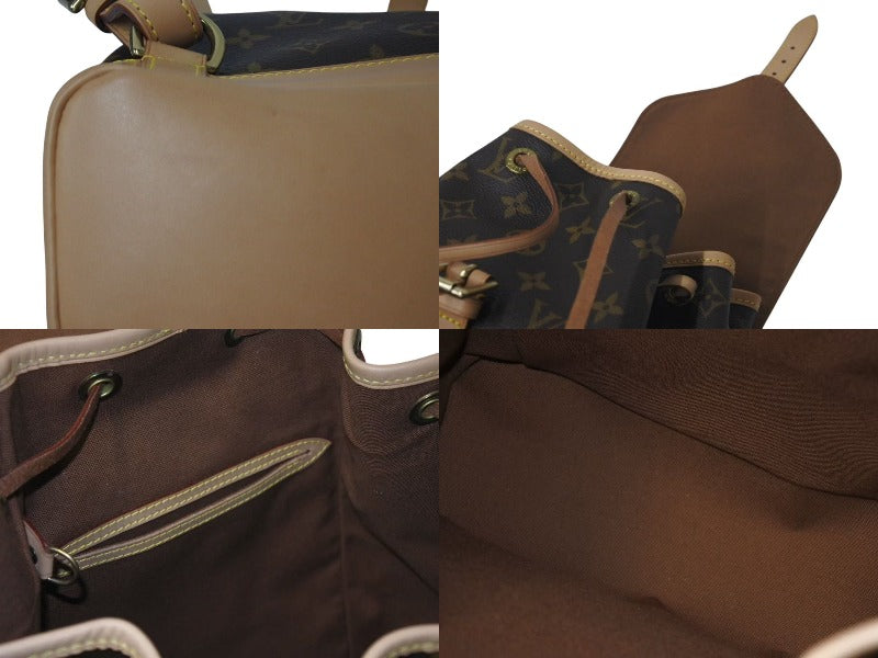 極美品 LOUIS VUITTON ルイヴィトン モンスリMM バックパック リュック M51136 PVC レザー ブラウン ゴールド金具 中古 4c073585